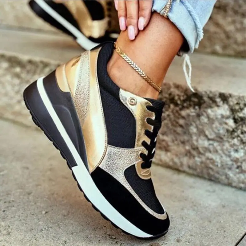 Женские кроссовки на платформе, искусственная кожа, шнуровка, круглый носок, Вулканизированная подошва, спортивная обувь