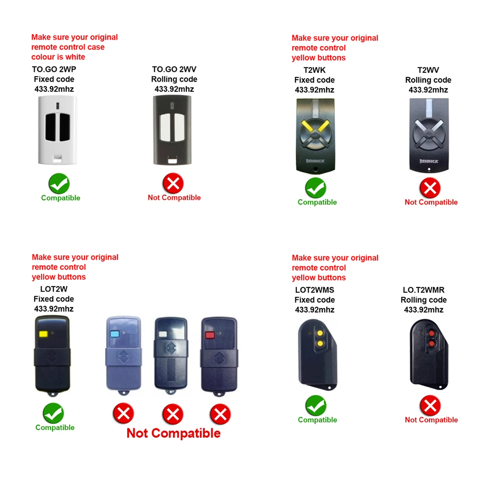 Это пульт дистанционного управления с фиксированным кодом 433 МГц 433,92 МГц. Он не совместим с кодом прокатки.