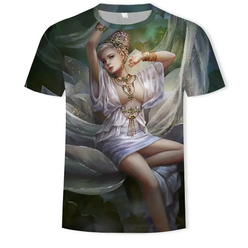 Футболка Мужскаяженская с 3D-принтом, шелковая с коротким рукавом, ...