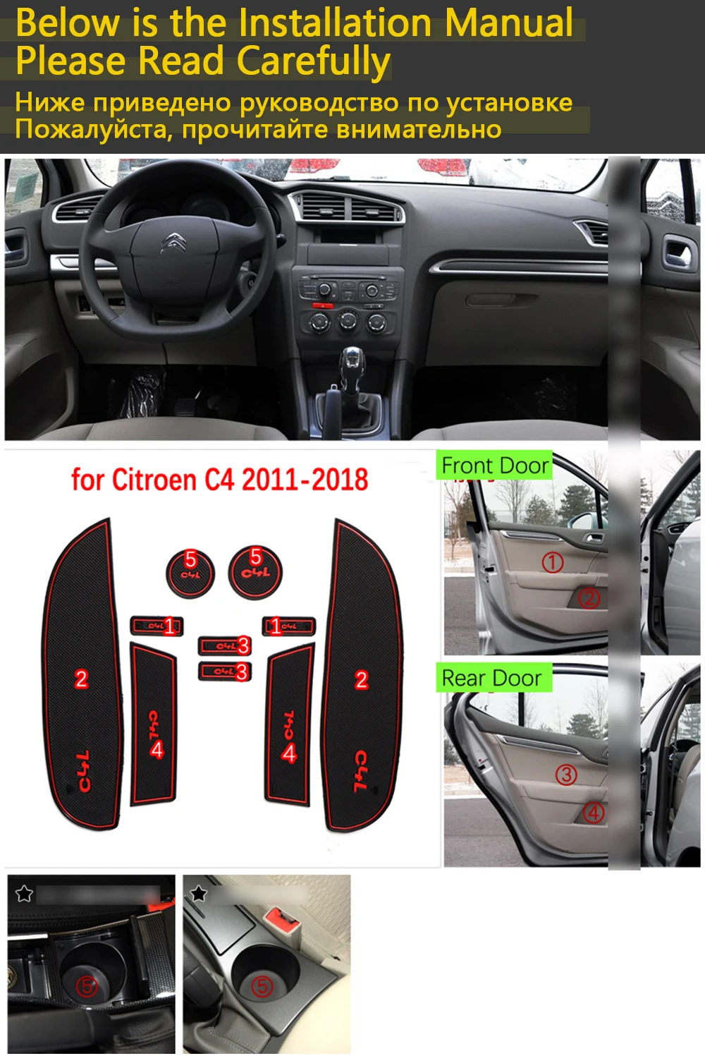 Для Citroen C4 MK2 C4L 2011 2018 2012 2013 2014 2015 резиновый противоскользящий коврик для двери, паз, подстаканник, слот для ворот, автомобильные аксессуары