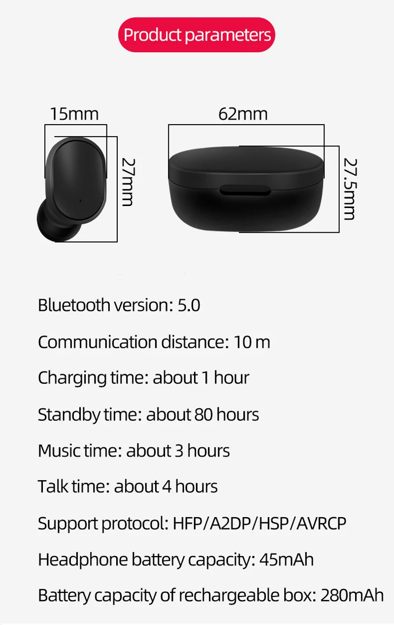 TWS Bluetooth-наушники; Спортивные Беспроводные наушники; Мини стереонаушники-вкладыши с басами и микрофоном для iphone, Xiaomi, Samsung, Huawei