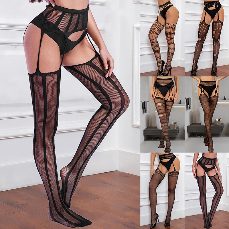 Чулки до бедра, Эротичные сетчатые чулки, сексуальный кружевной топ на бретелях, прозрачное боди, колготки для игр
