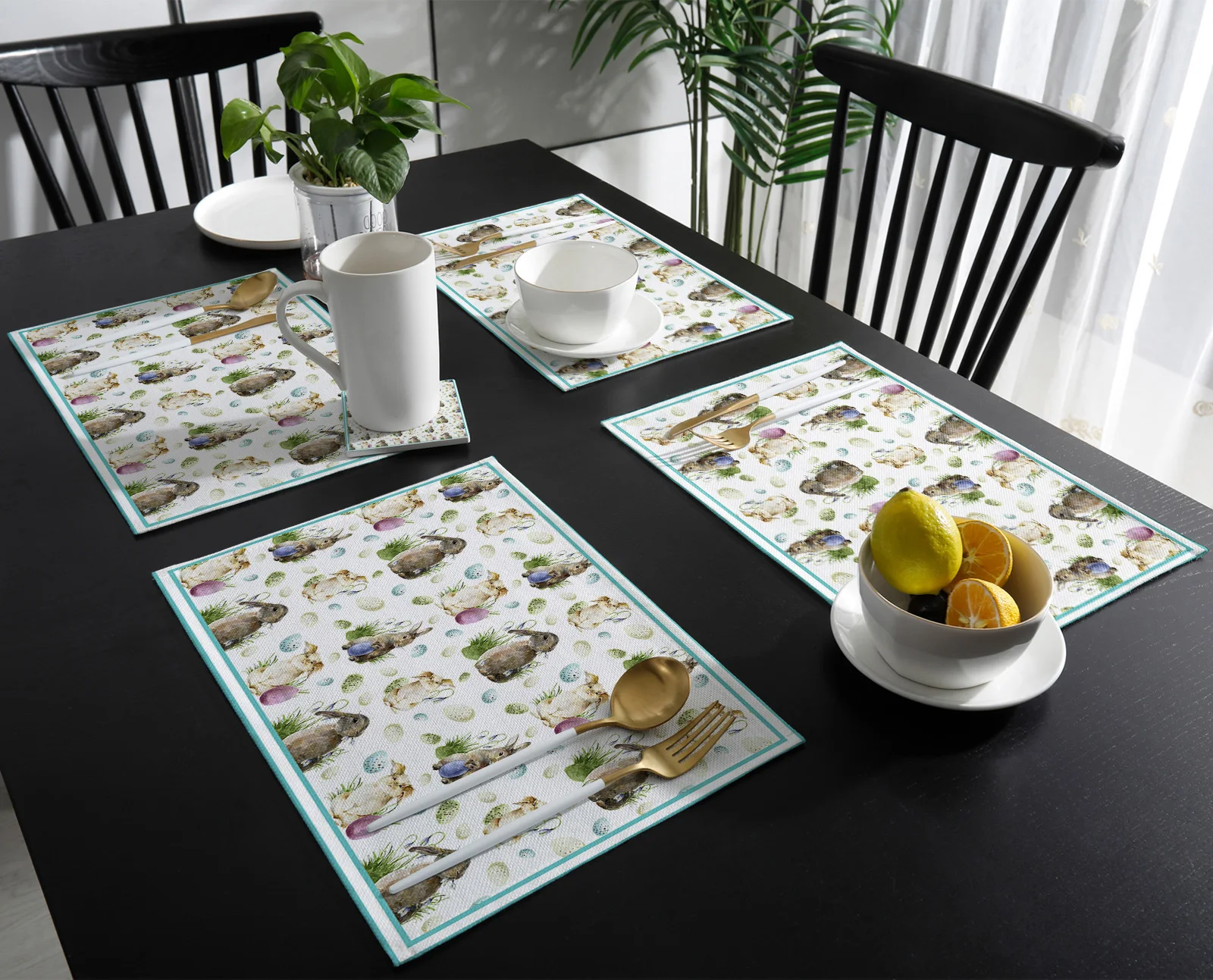 Пасхальные яйца-кролики, акварельные кроличьи скатерти, украшение для дома, праздничная скатерть, кухонные аксессуары, коврик для стола