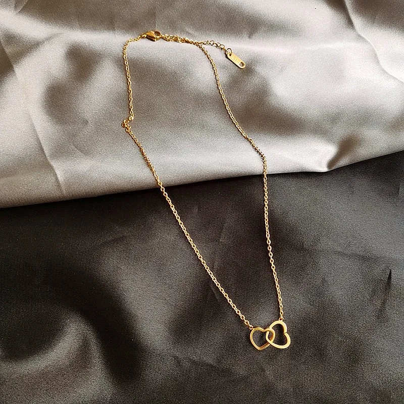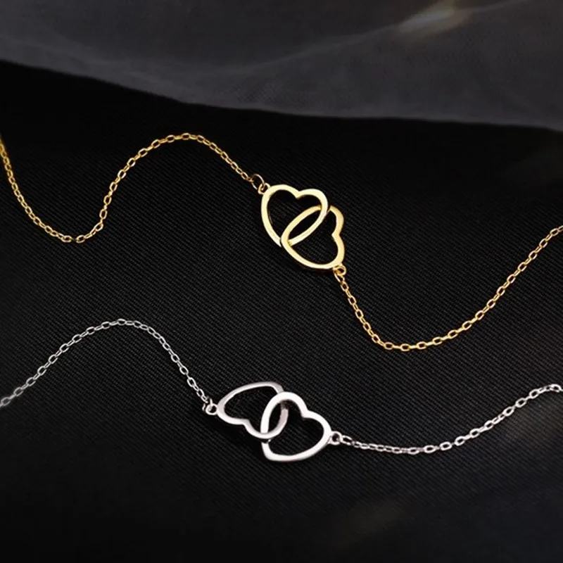 Простое модное ожерелье с подвеской в виде двойного сердца, Женская...