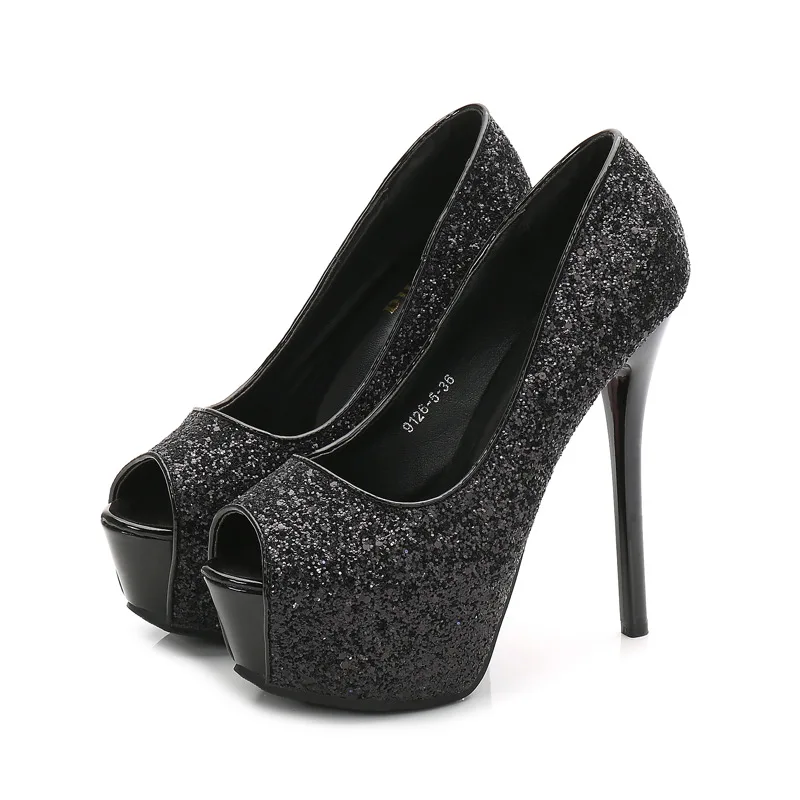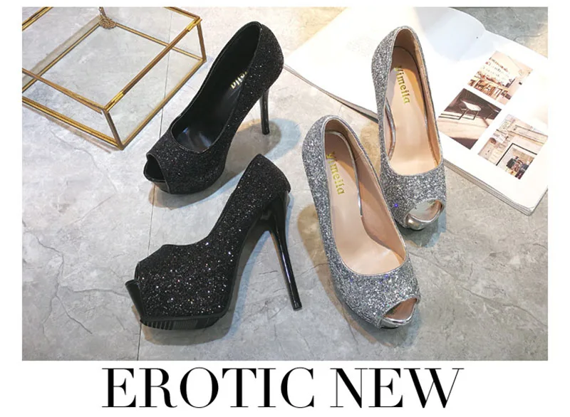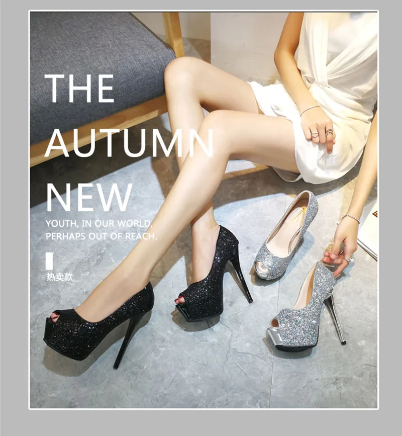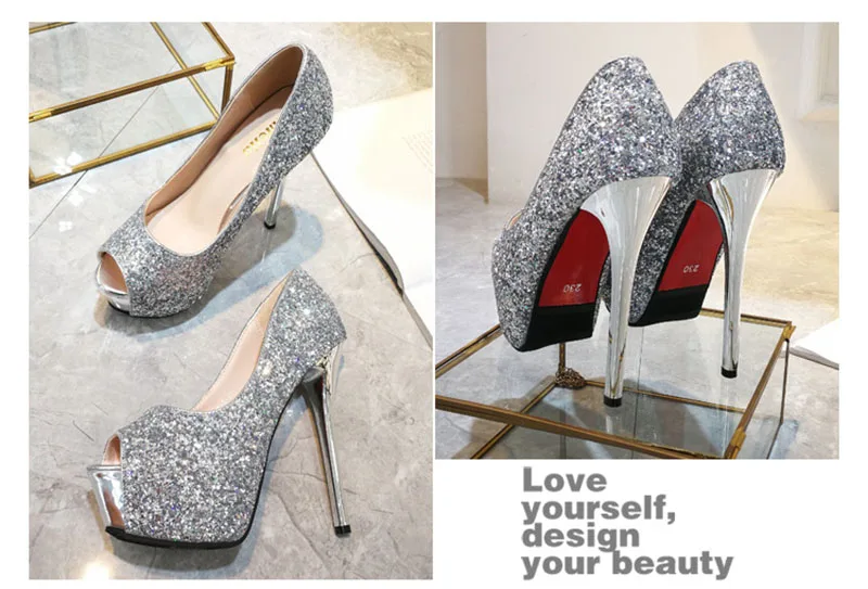 Сандалии женские на платформе и высоком каблуке 14 см с блестками