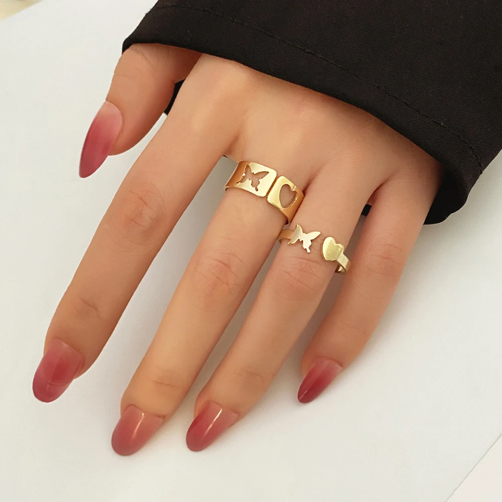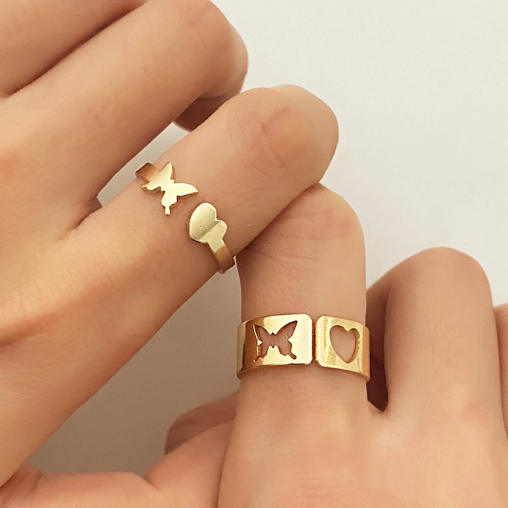 Модные серебряные кольца с бабочкой для женщин и мужчин, комплект колец для влюбленных пар, обручальные кольца для дружбы, свадебные открытые кольца, ювелирные изделия 2021 года