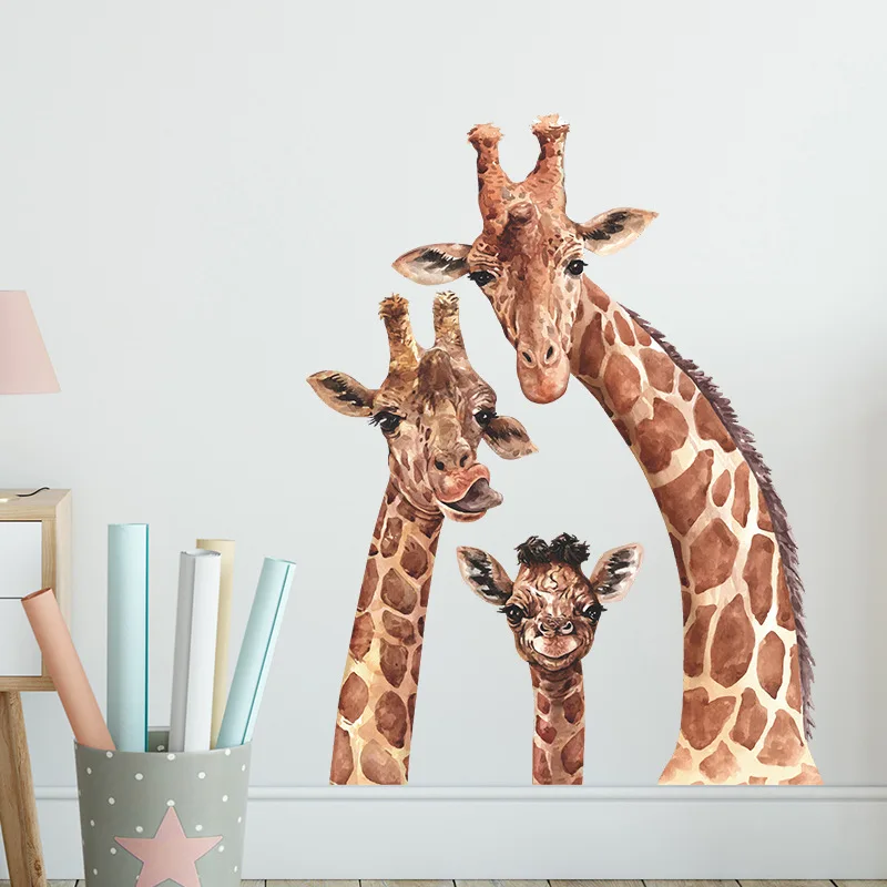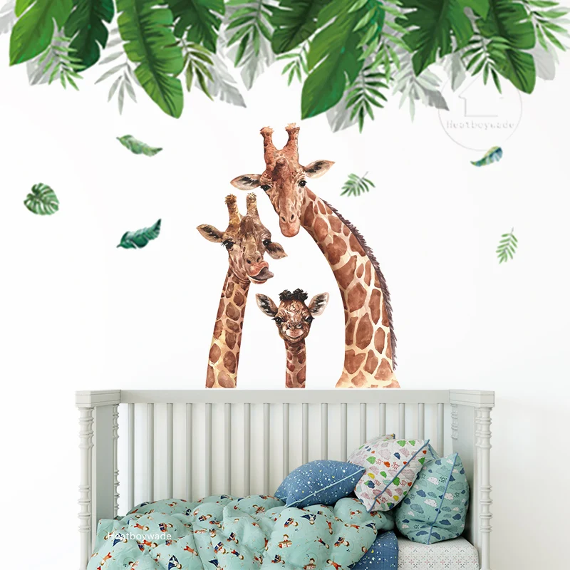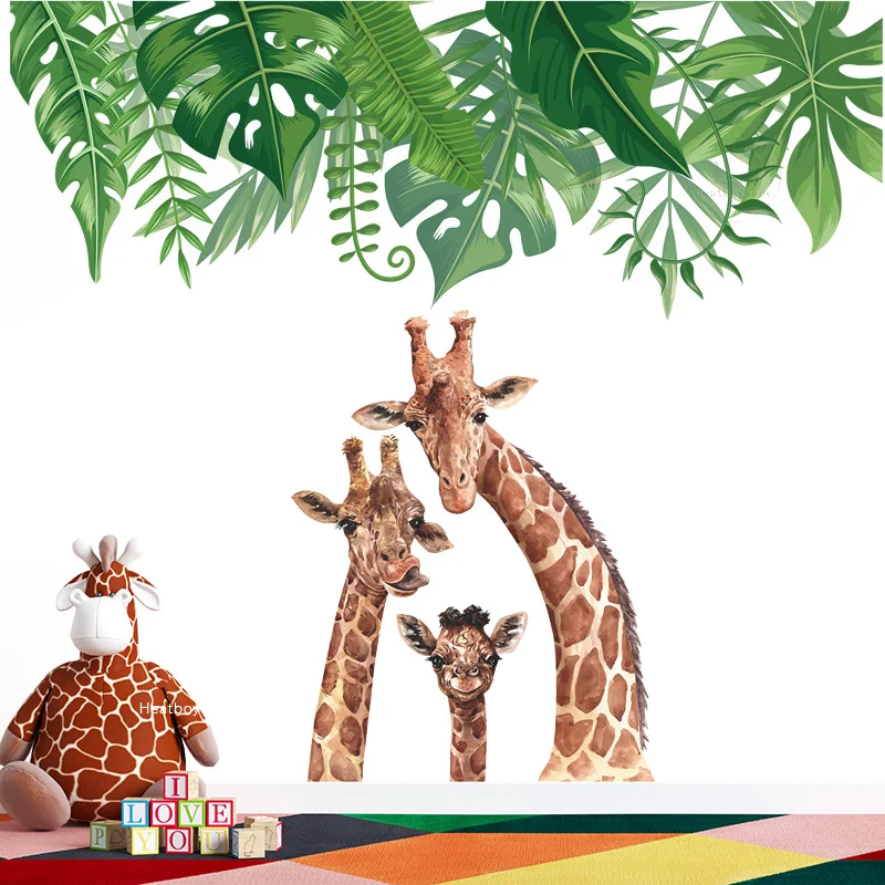 Большие настенные наклейки с зелеными листьями, настенные украшения для гостиной, спальни, детской комнаты, жираф, фотообои для домашнего декора
