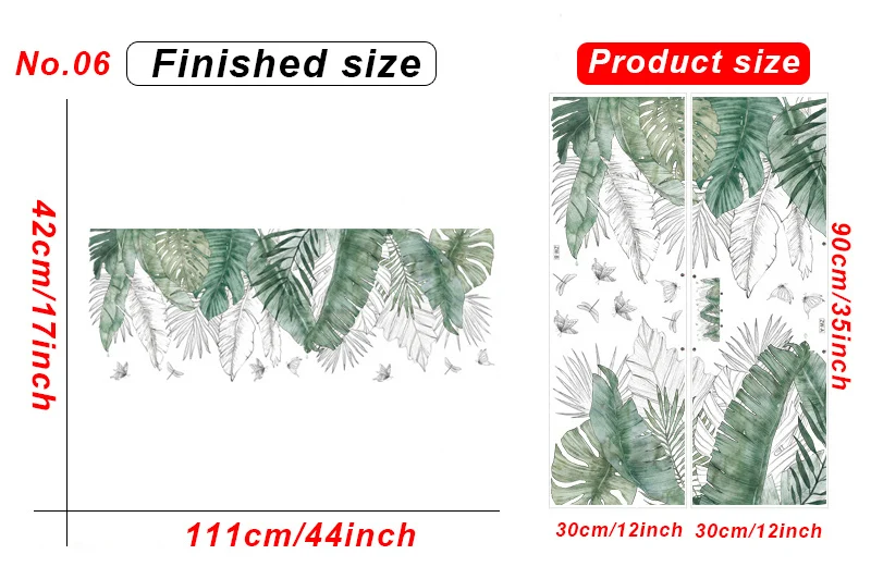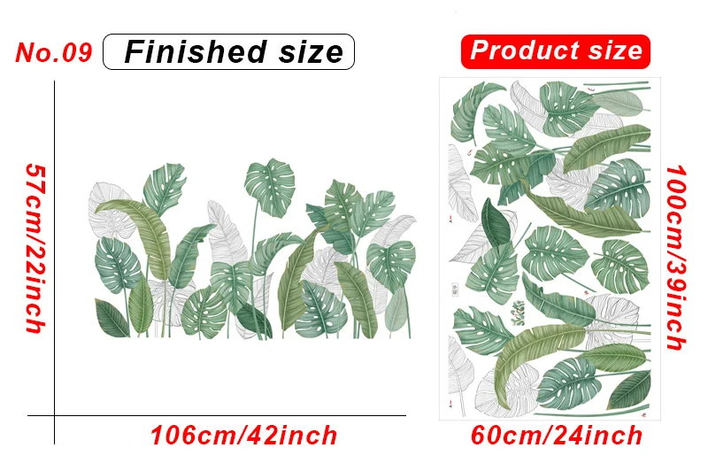 Большие настенные наклейки в скандинавском стиле с зелеными листьям...