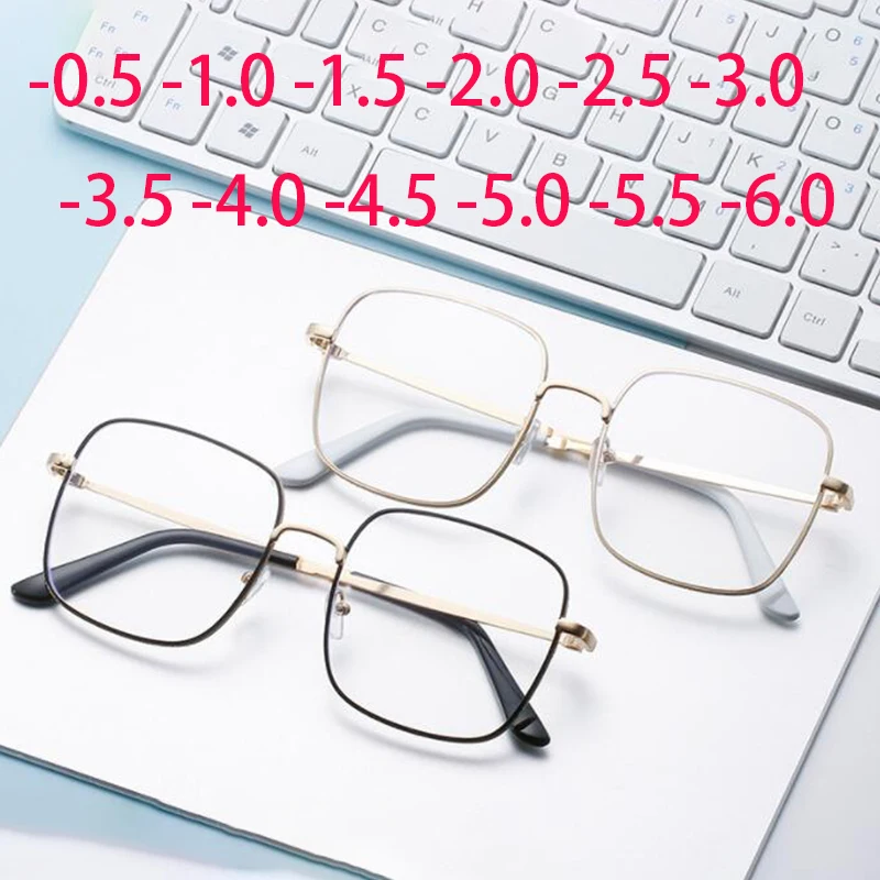 Очки для близорукости для мужчин и женщин, квадратные, в металлической оправе, с диоптриями 0-6,0, большие размеры