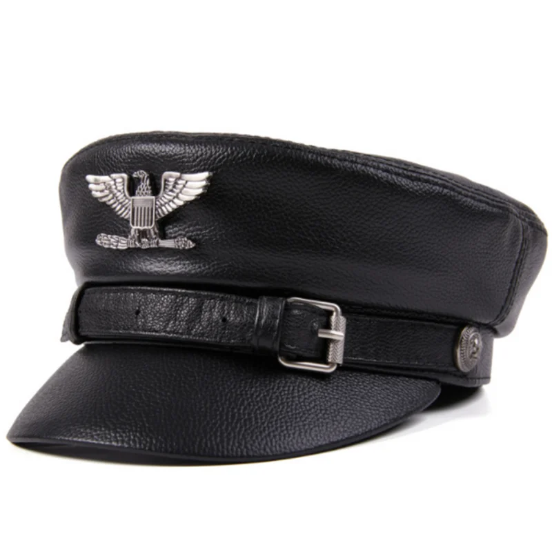 Кепка из натуральной воловьей кожи для мужчин и женщин, модная немецкая шапка в стиле милитари, головной убор капитана, тёмно-синие кепки в стиле милитари, Осень-зима 2021