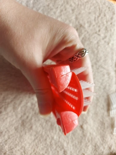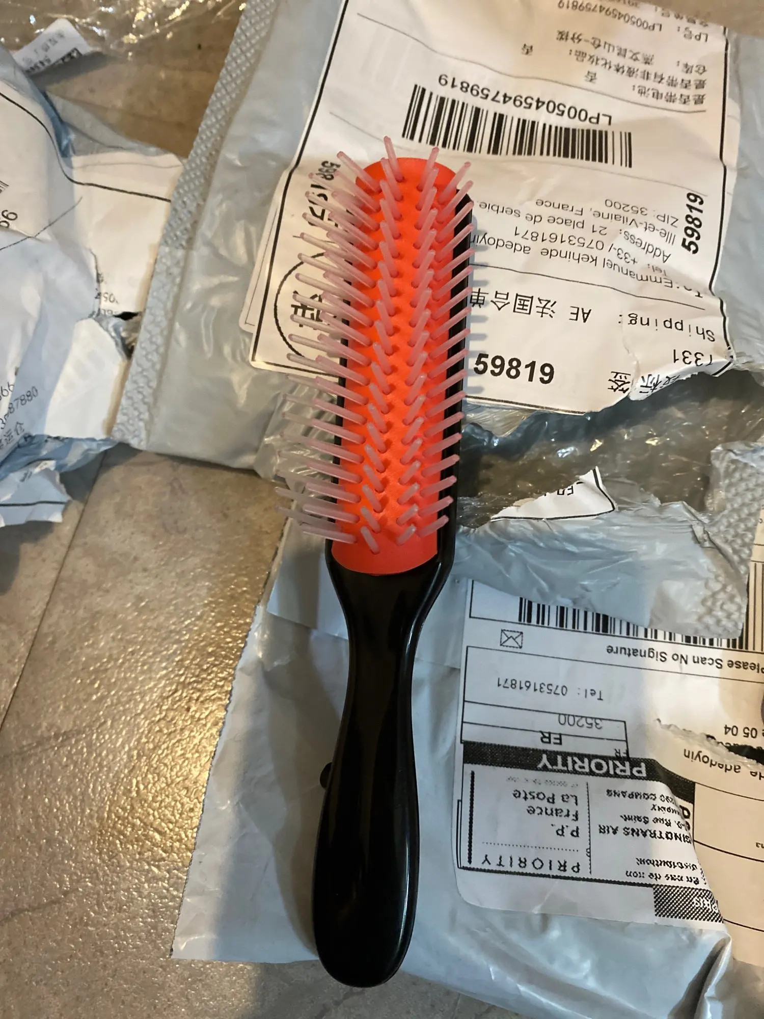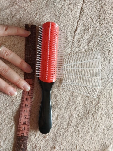 bardzo dobra szczotka, dokładnie jak na zdjęciu. trzeba się przyzwyczaić do tych sztywnych igiełek, ale fajne loki robi. wysyłka do polski w 3 tygodnie, wiec tez jest ok