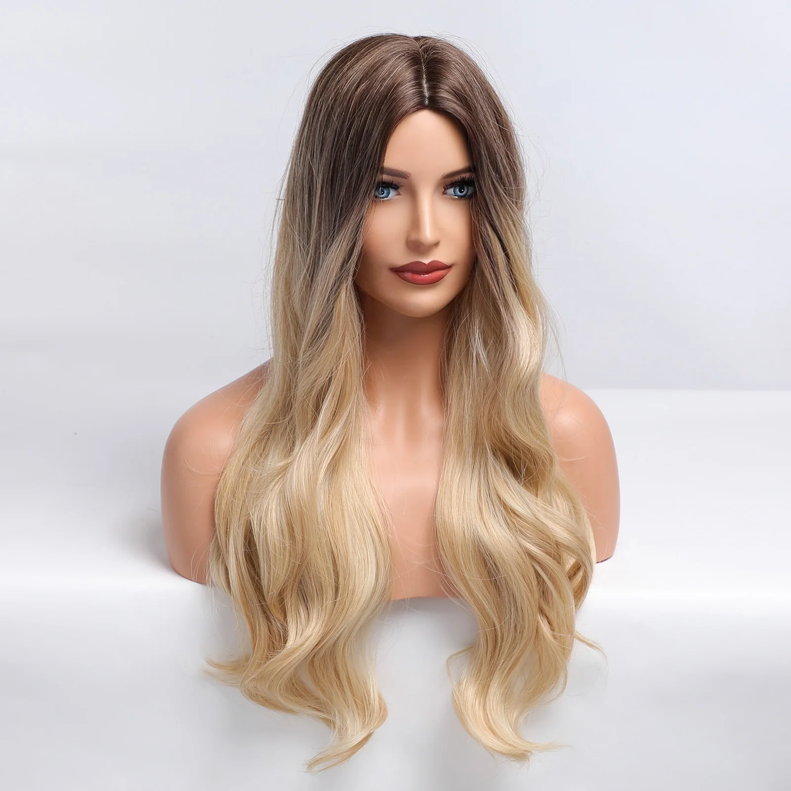 EASIHAIR, длинные, золотистые, светлые, синтетические парики для женщин, волнистые парики, коричневый, блонд, Омбре, парики, термостойкие, средняя часть, парик для косплея