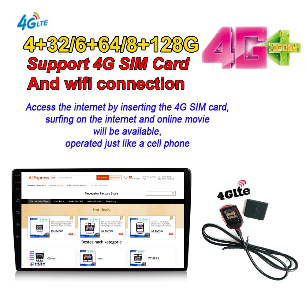 Автомагнитола 9 дюймов, 4G, Wi-Fi, 8 + 128 ГБ, IPS, DSP, Android 11...