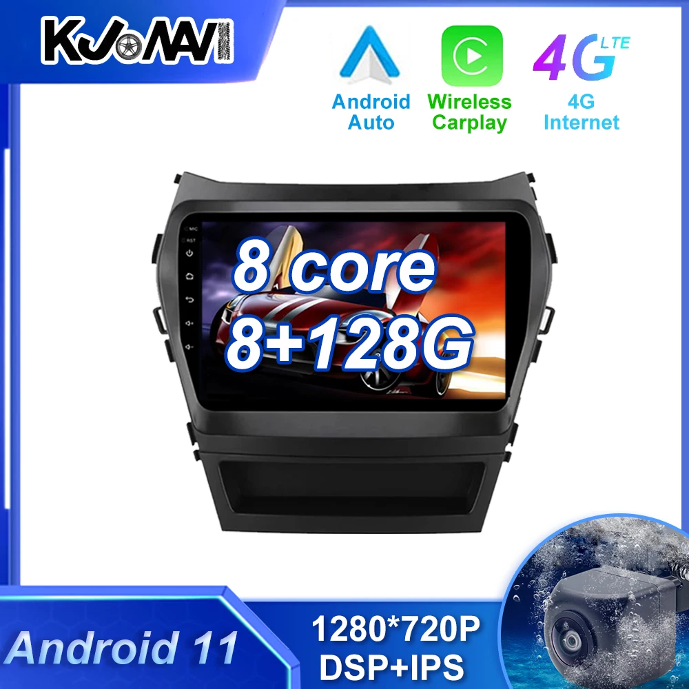 Автомагнитола Carplay, мультимедийный стерео проигрыватель на Android 11,0 с Wi-Fi и GPS-навигацией для Hyundai Santa Fe 3 2013 - 2016