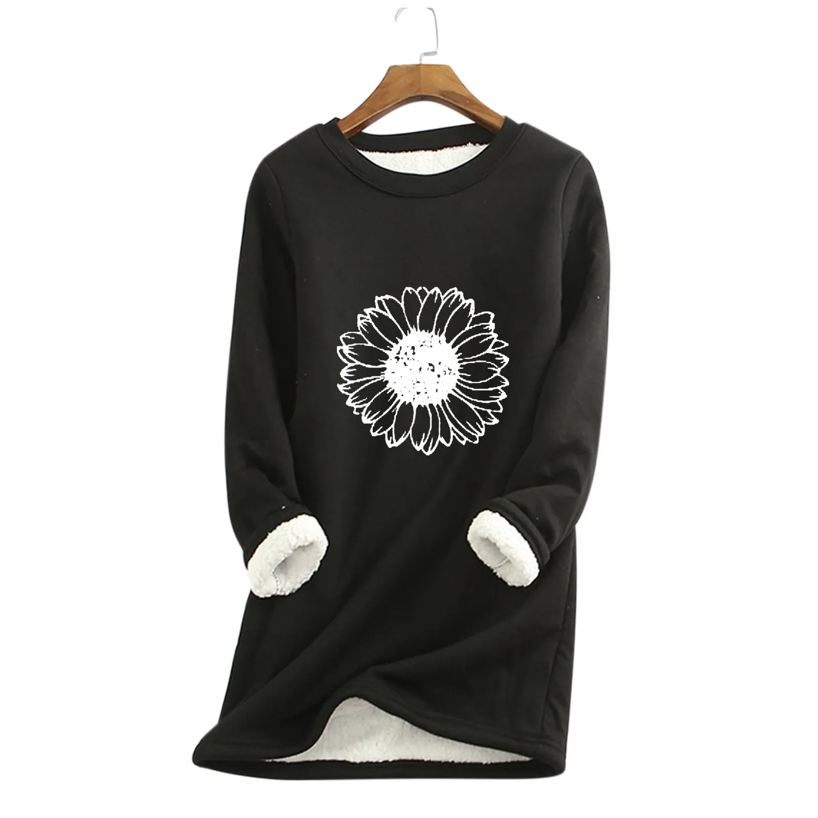 Женские футболки из плотного флиса с принтом одуванчиков, длинные рукава, туника, топы плюс бархатная зимняя теплая одежда