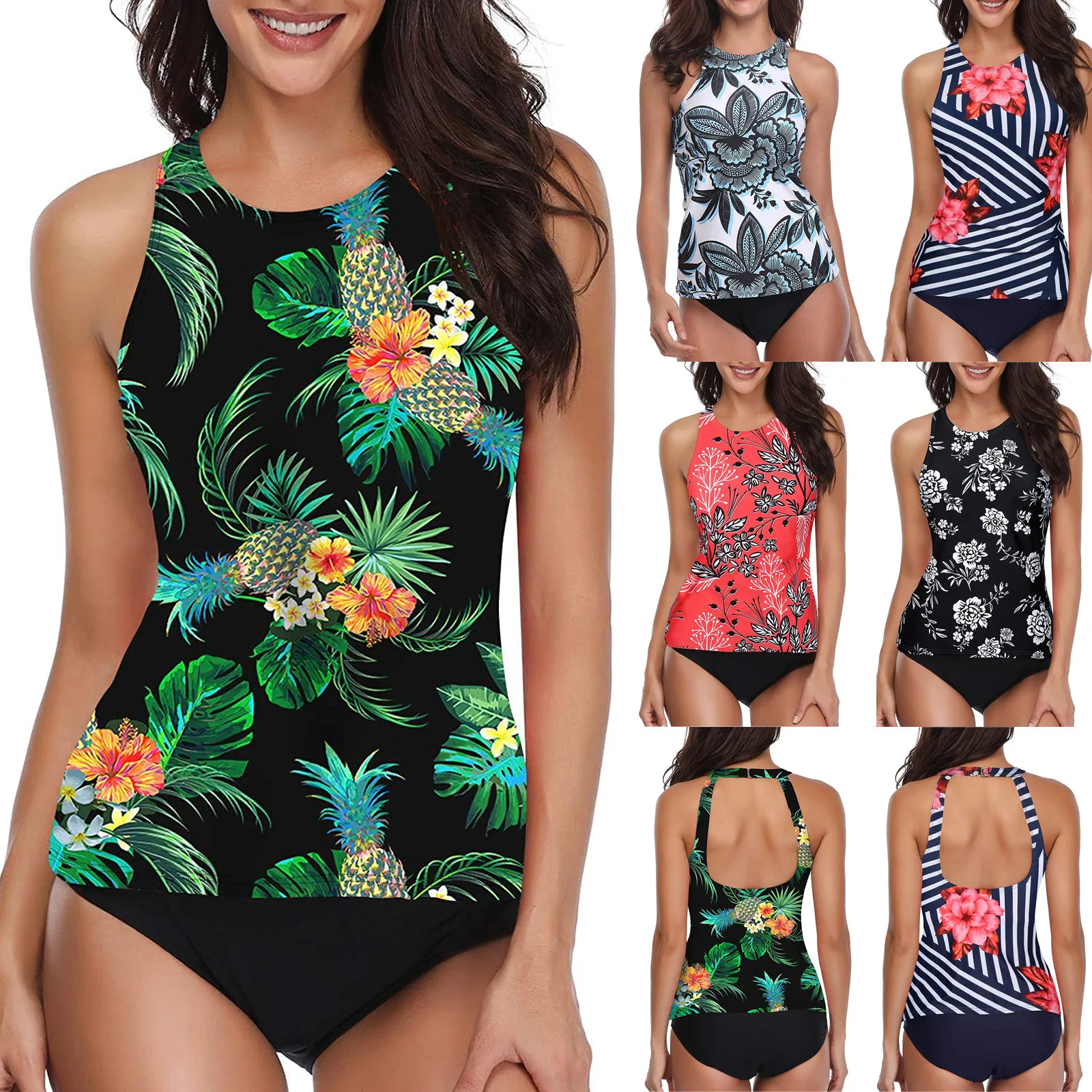 Женские Купальники, танкини с высокой талией, купальник из двух предметов, купальный костюм 2022, танкини, летний винтажный комплект бикини, женский купальник
