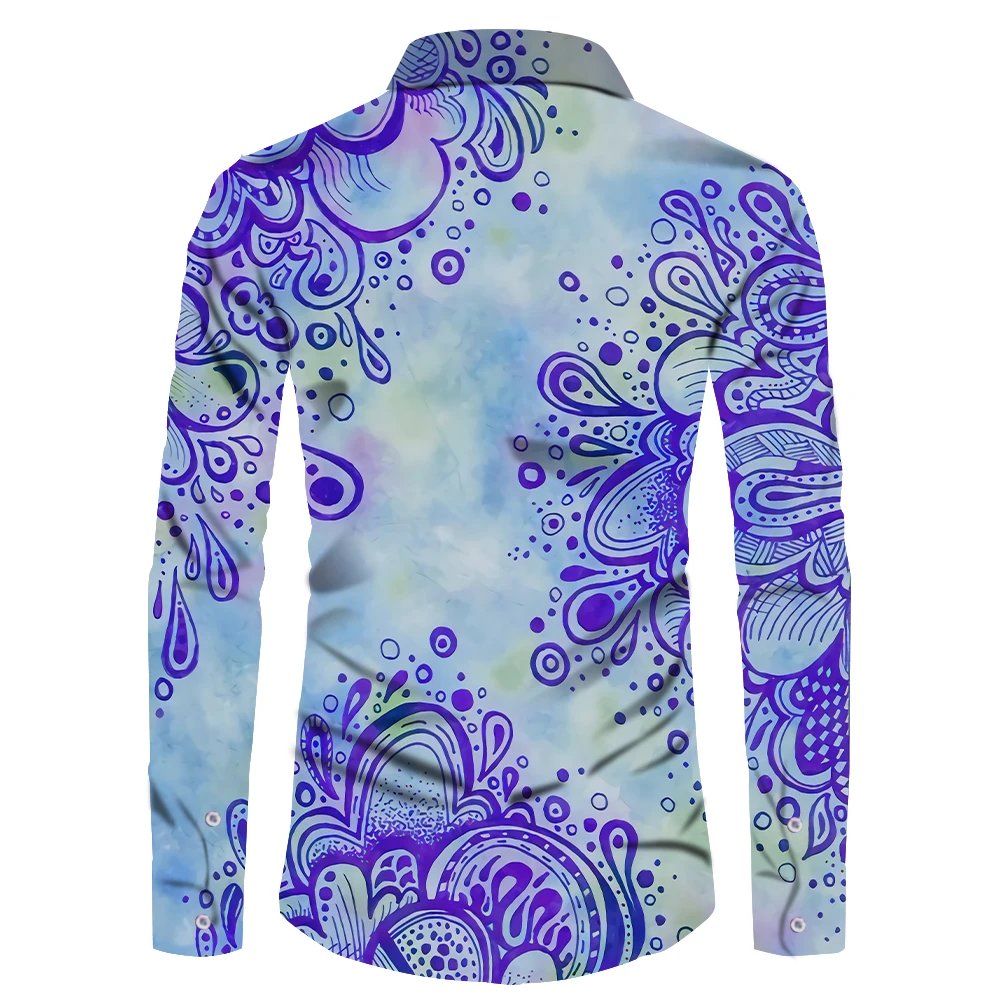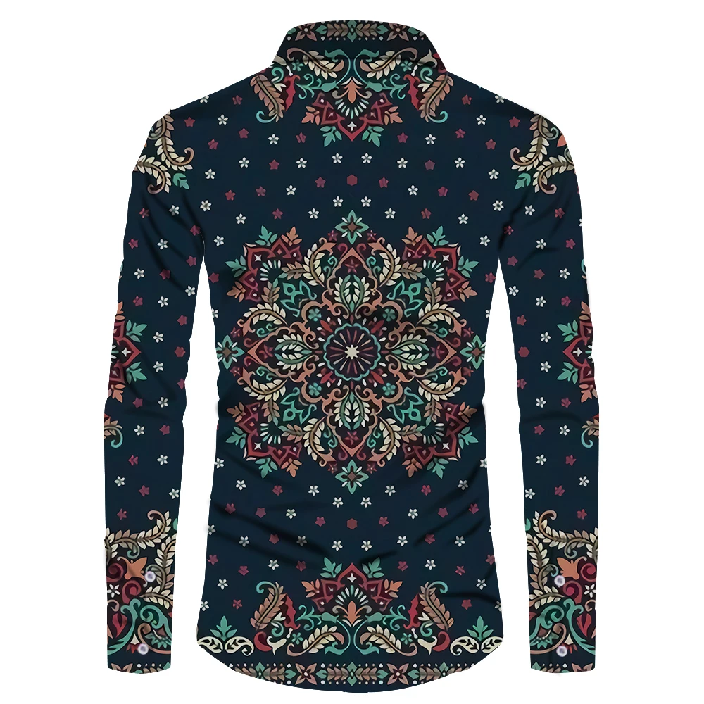 Мужская рубашка с длинным рукавом и принтом в этническом полинезийс...
