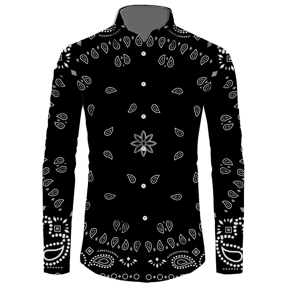 Рубашка мужская оверсайз с длинным рукавом, повседневная Бандана с ...