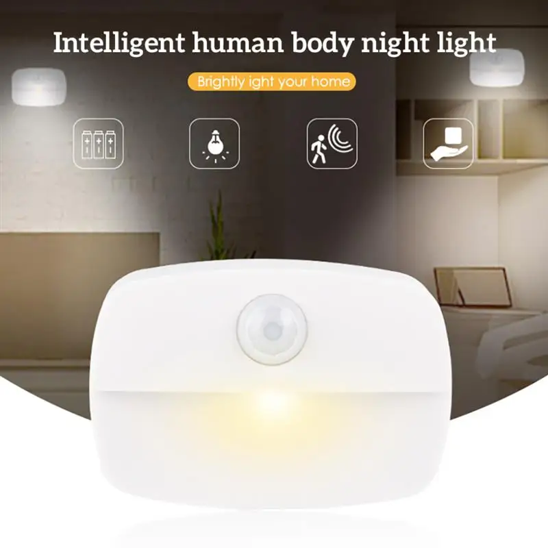 Беспроводная Ночная лампа с датчиком движения, светодиодный ночник, батарейки, маленькие ночные светильники, лампа для комнаты, коридора, шкафа, простая установка