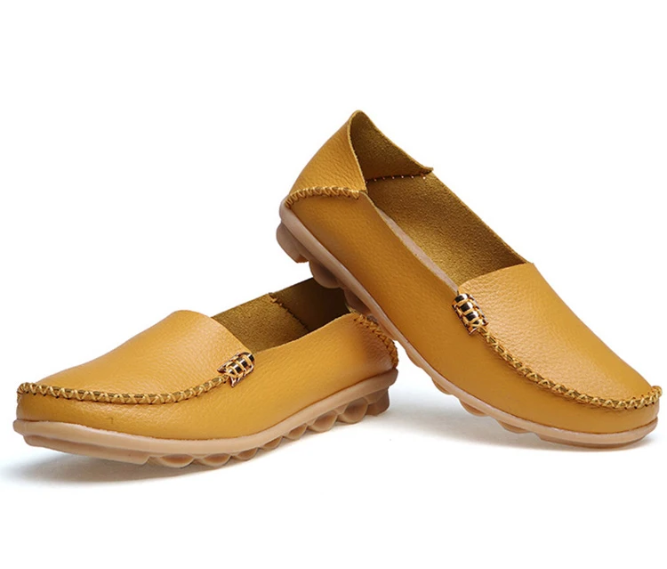 Женские мокасины на плоской подошве, из натуральной кожи, без шнуро...