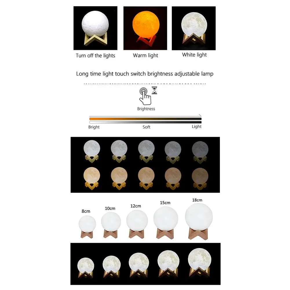 3d-принт, светодиодный светильник в форме Луны, сенсорный переключа...