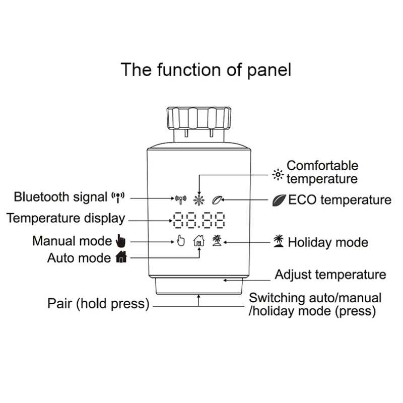 5. Обнаружение открытого окна: когда температура в помещении неожиданно падает в темп. Порог, клапан закроется в течение 15 минут. После этого, если температура в помещении. Все еще ниже, чем температура. Порог, он сохранит этот режим. Кроме того, его легко читать цифровой дисплей с температурой Цельсия.