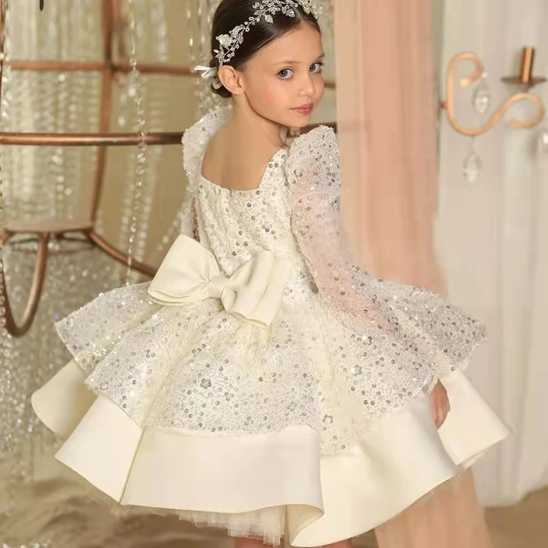 Блестящие очаровательные платья с цветами для девочек, с длинным ру...