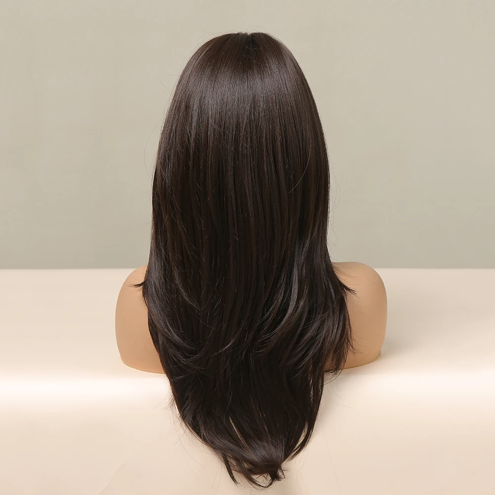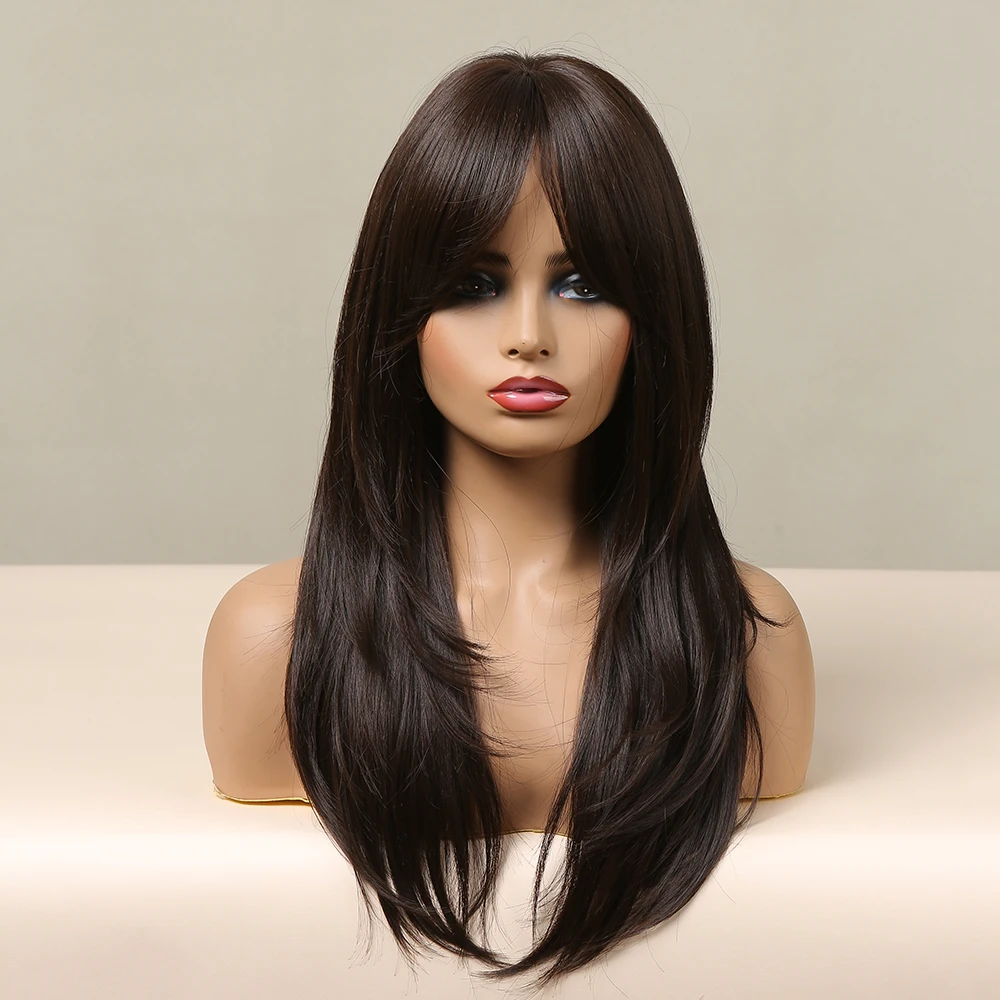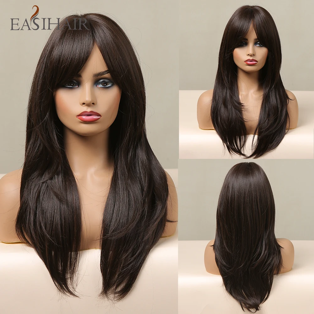 EASIHAIR Длинные темно-коричневые синтетические парики для женщин натуральный многослойный парик с челкой натуральные волосы парики термостойкие косплей парик
