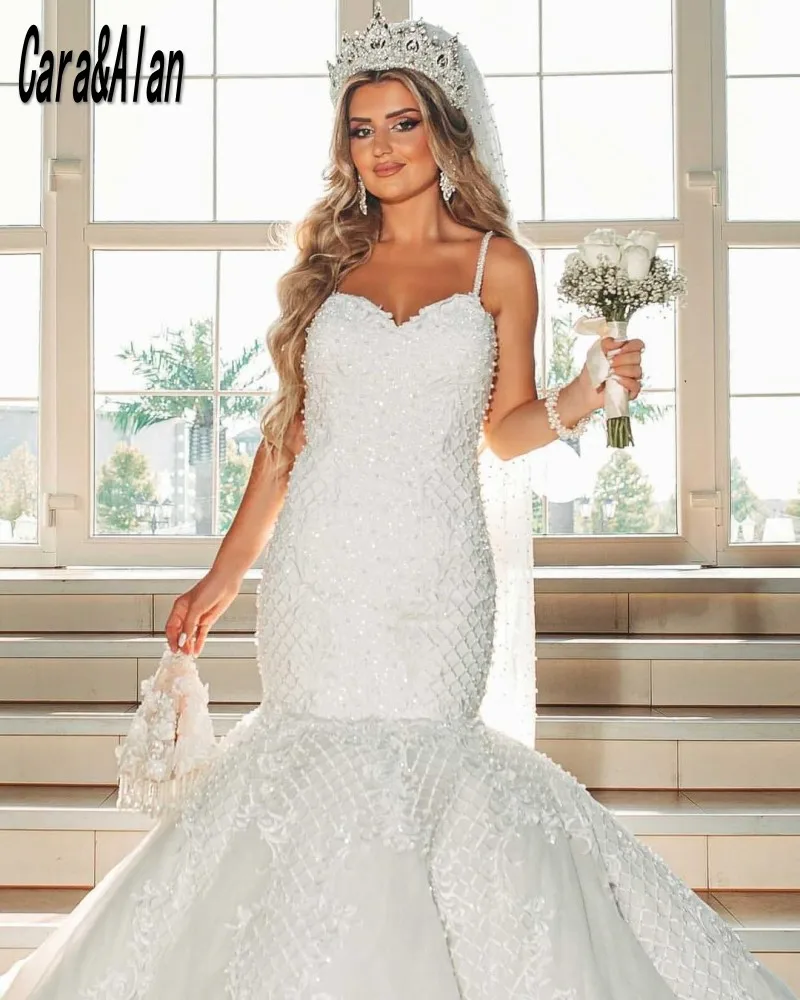 Элегантные арабские Свадебные платья с юбкой-годе на тонких бретельках Кружевная аппликация Блестки женское свадебное платье с юбкой-годе