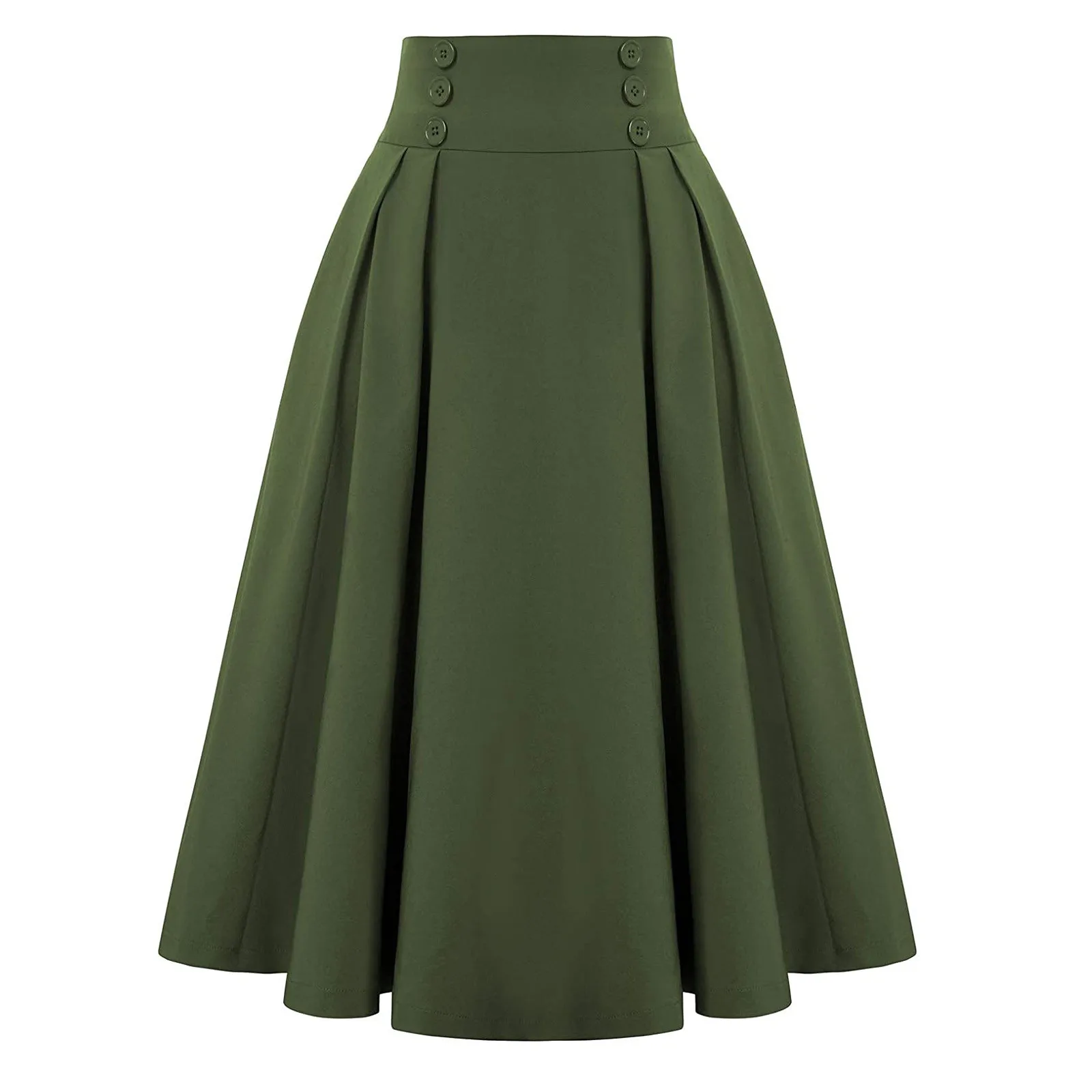 Однотонная женская винтажная длинная Плиссированная юбка, Женская осенне-зимняя Элегантная модная женская трапециевидная Базовая повседневная юбка с высокой талией