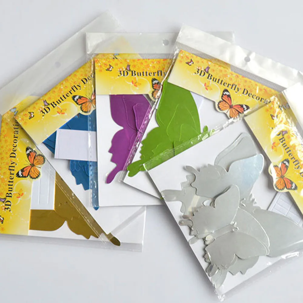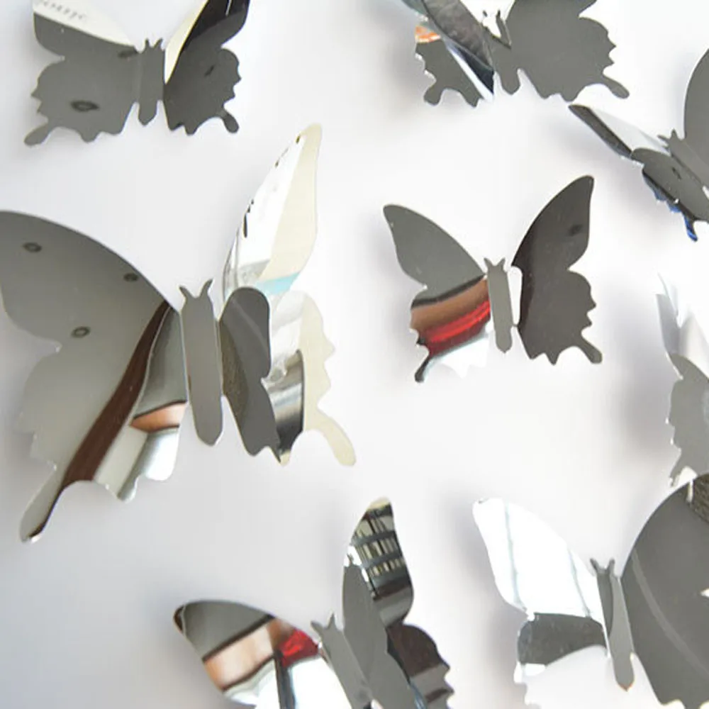 12 шт Бабочка серебряное зеркало украшение для дома комнаты искусство 3D DIY настенные наклейки