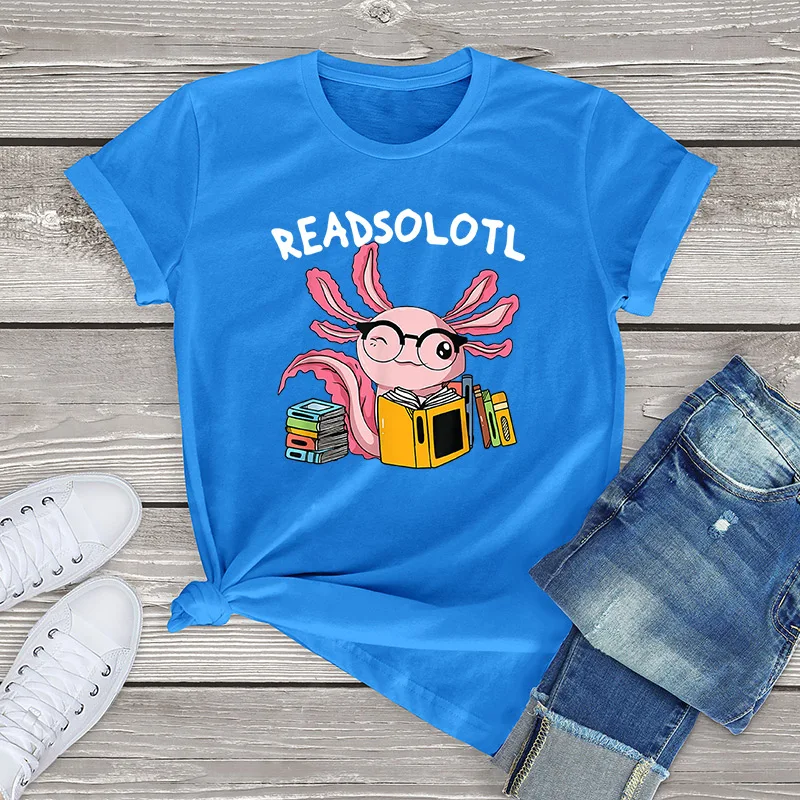 Футболка унисекс с коротким рукавом и надписью «Readsolotl» из 100% хлопка, забавная графическая футболка, женские Топы Kawaii, модная рубашка