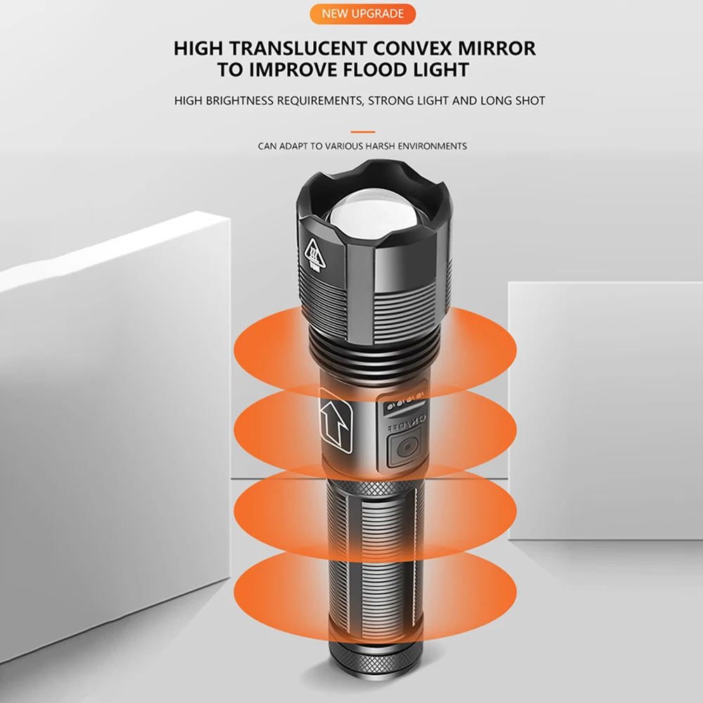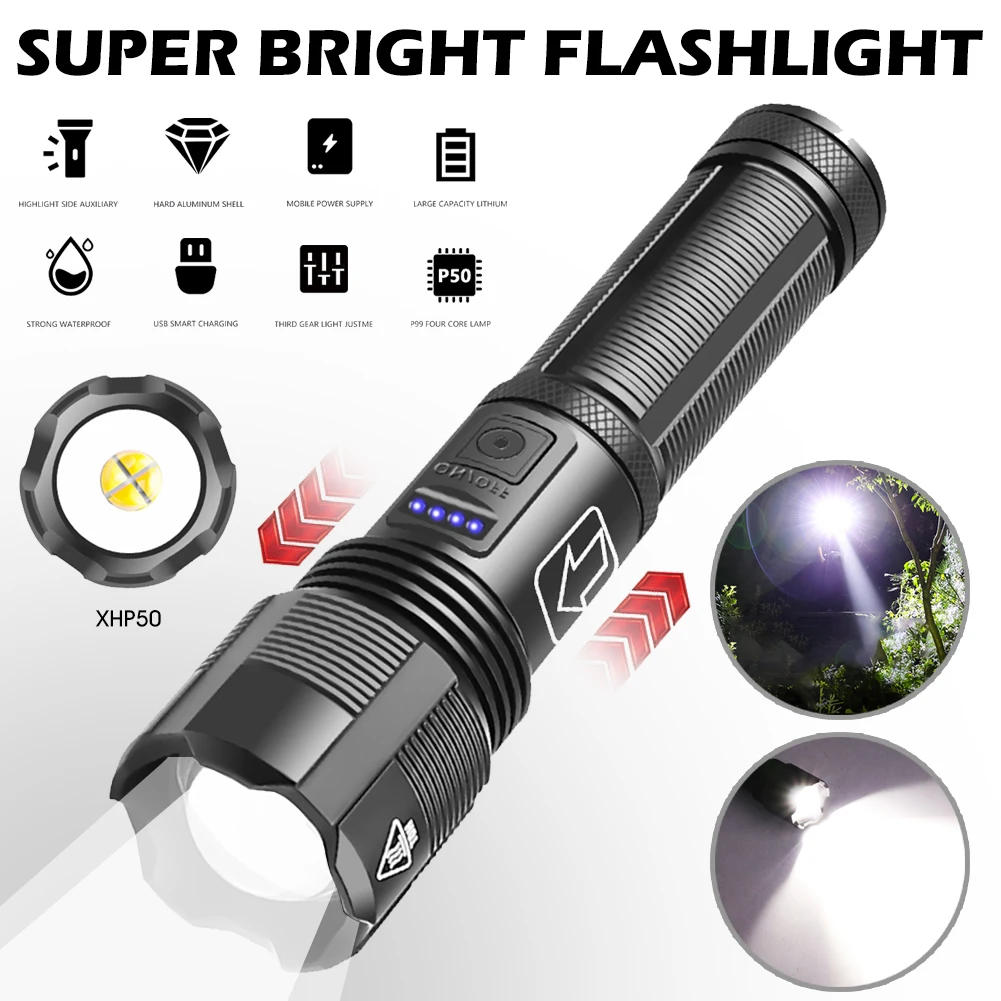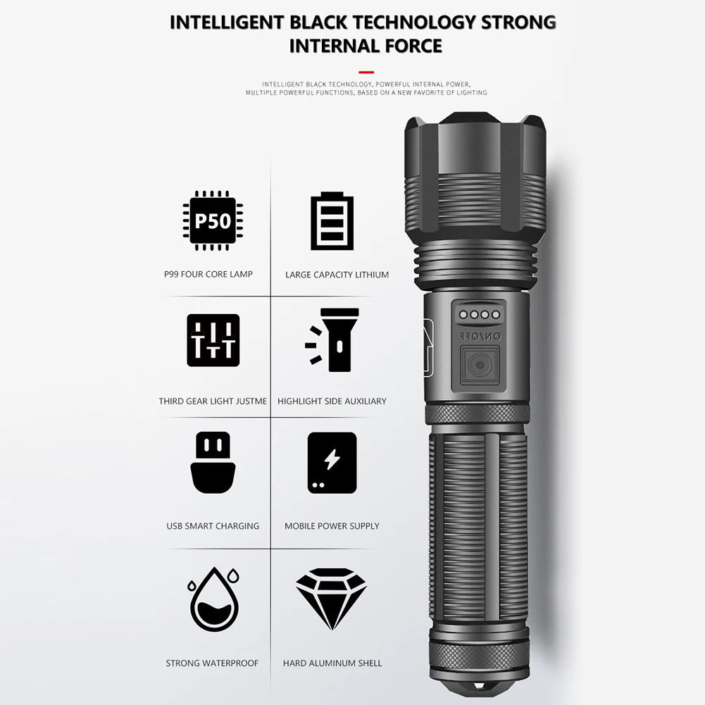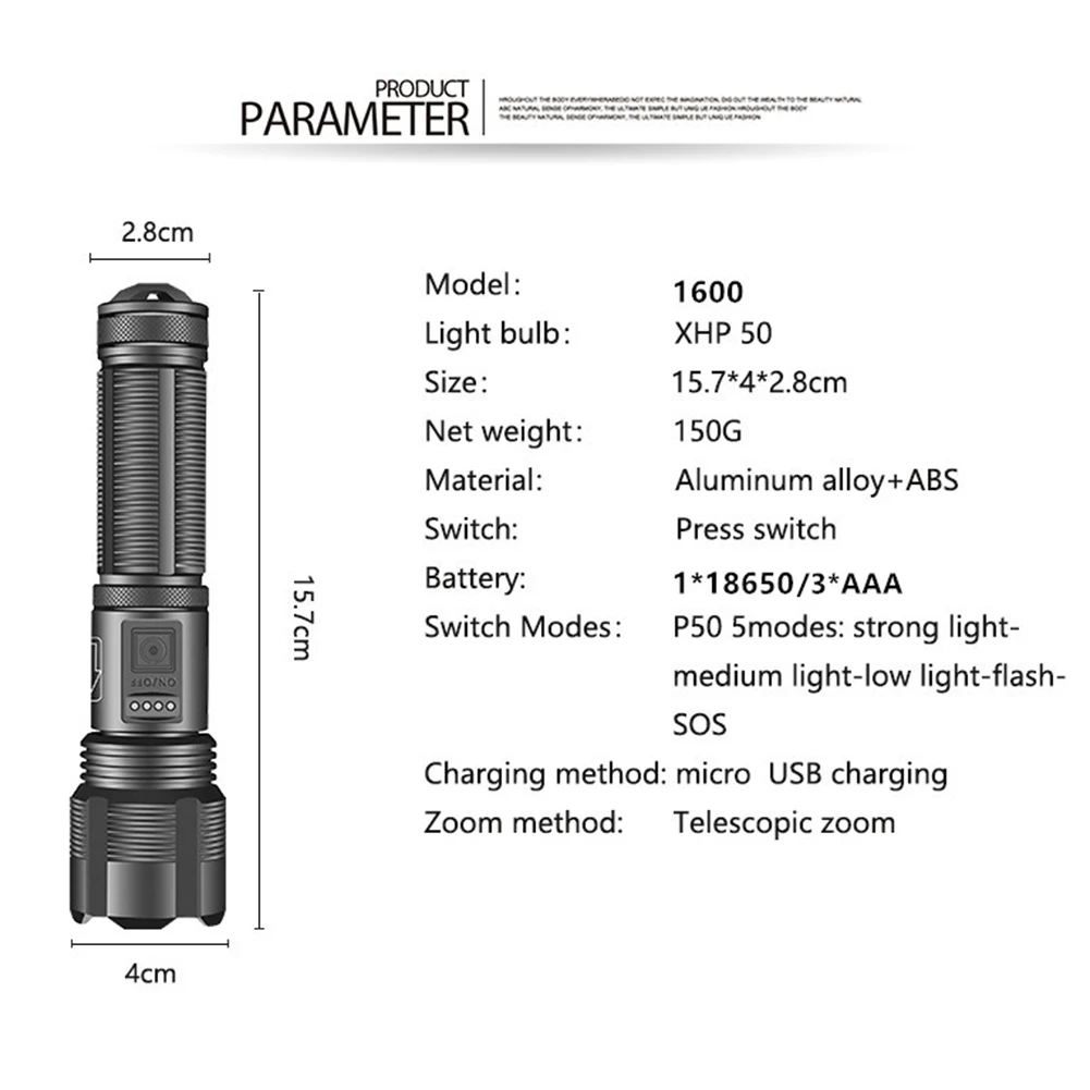 * 1. Этот фонарик оснащен бусинами с подсветкой P50, имеет длительный срок службы, что делает этот фонарик ярче, чем другие фонарики.