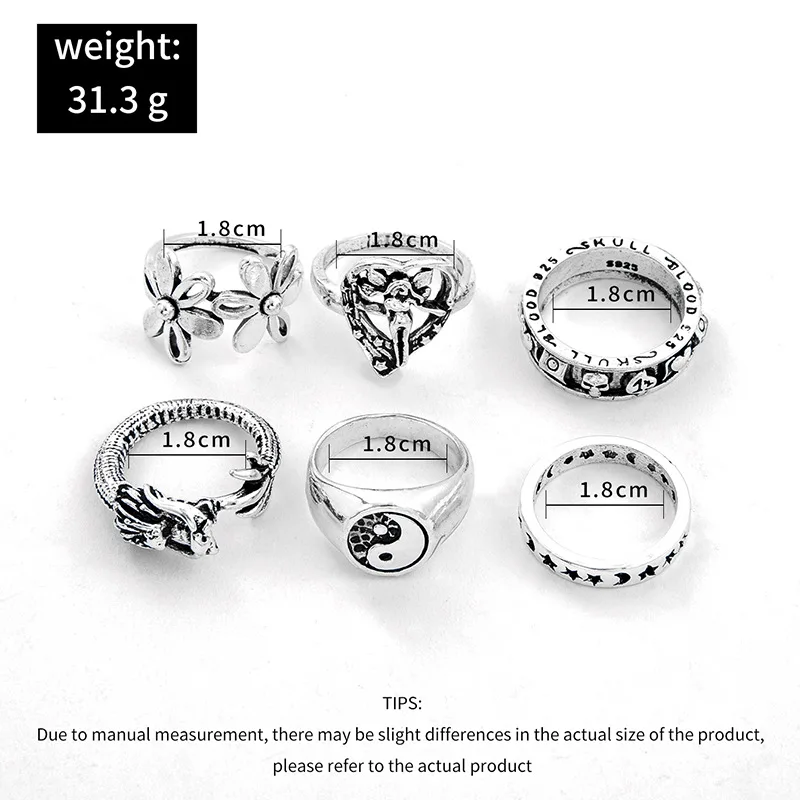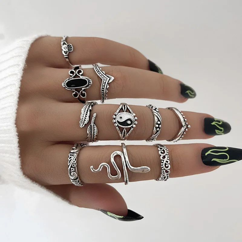 Винтажный Готический Набор геометрических колец в форме сердца для девушек и женщин 2022 Модные Простые Кольца из металлического сплава в стиле тайчи для женщин