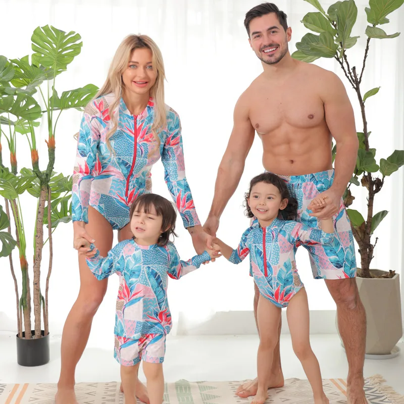 Тропические листья, семейный дневной купальник с длинным рукавом дл...
