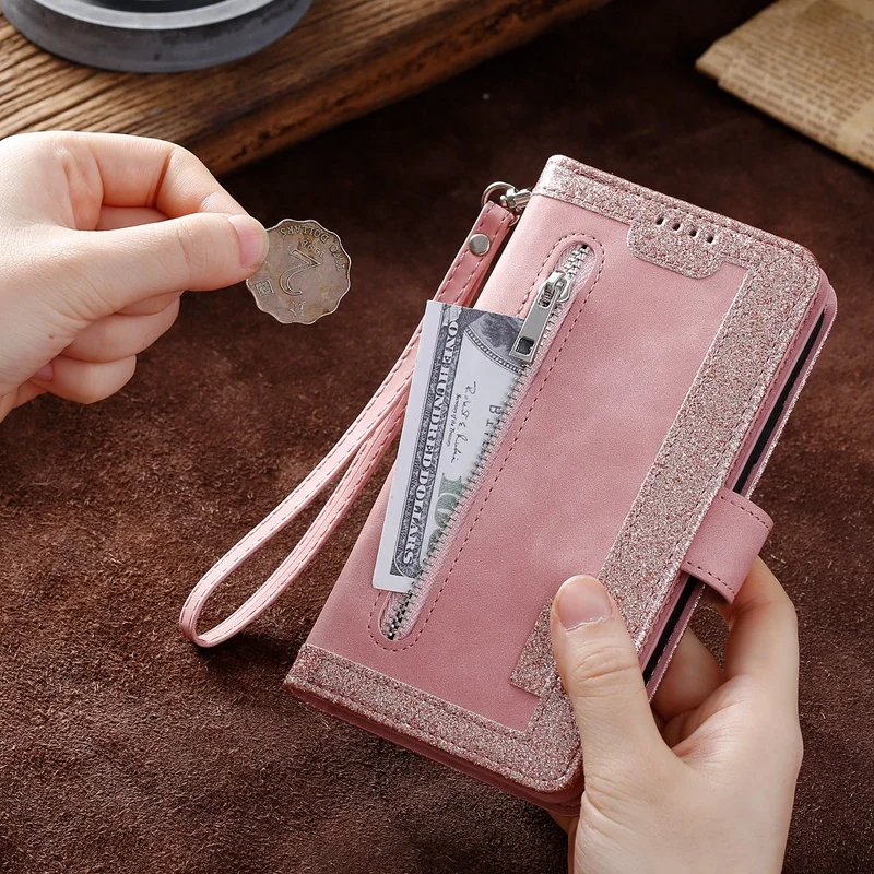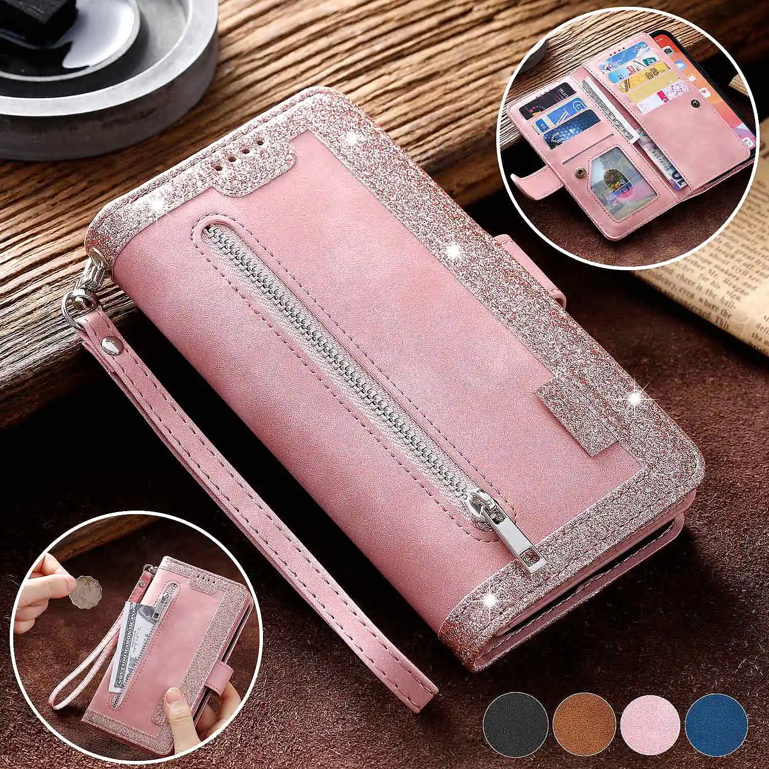 Чехол с 9 отделениями для карт для iPhone 13 Pro Max, роскошный блестящий чехол-кошелек для iPhone 13, 12, 11, XR, 6, 7, 8, SE, кожаный флип-чехол на молнии 2022