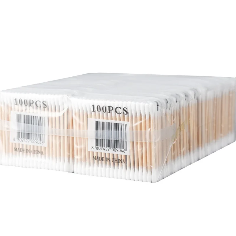 Деревянные ватные палочки с двойной головкой для женщин, макияж, ватные палочки, деревянные палочки для ушей и носа, инструменты для ухода за ребенком, деревянные палочки