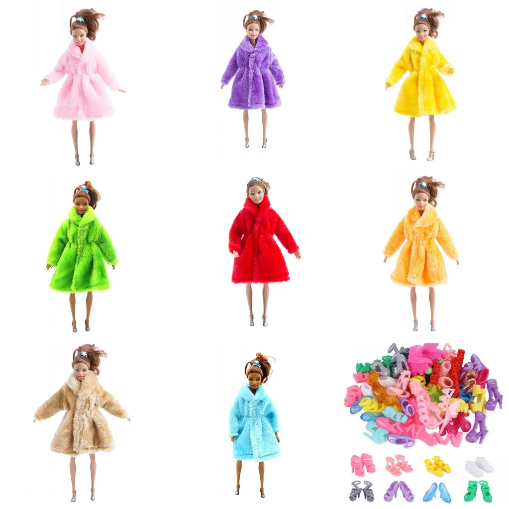 2 шт.компл. = 1 плюшевое пальто + 1 пара обуви на каблуках для Барби 11,8 дюймов, одежда, аксессуары для Барби, 30 см, игрушки, одежда для девочек