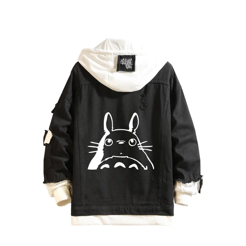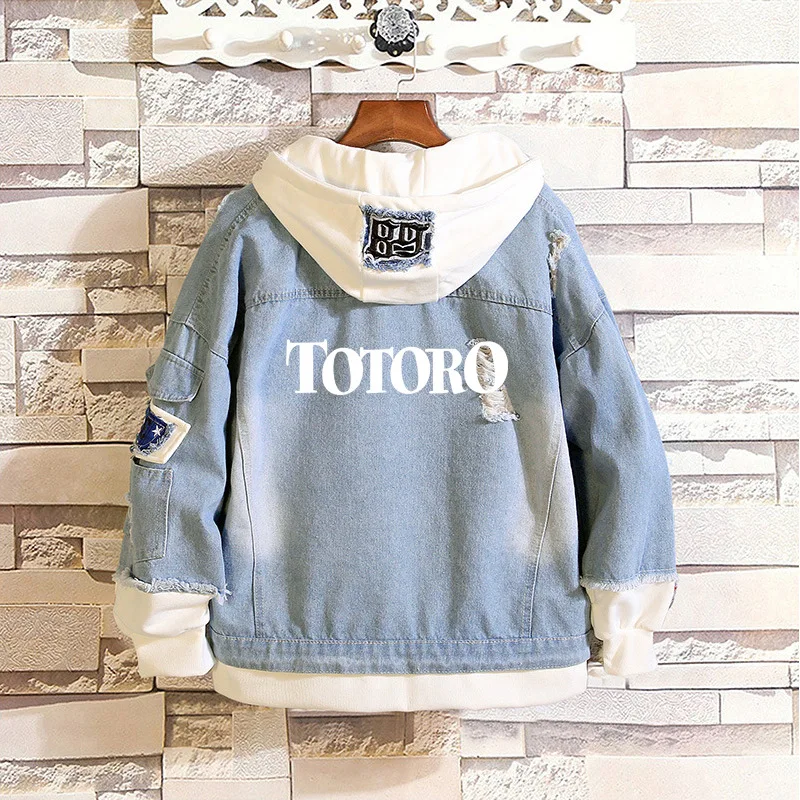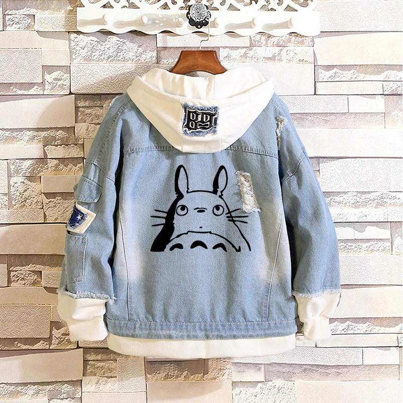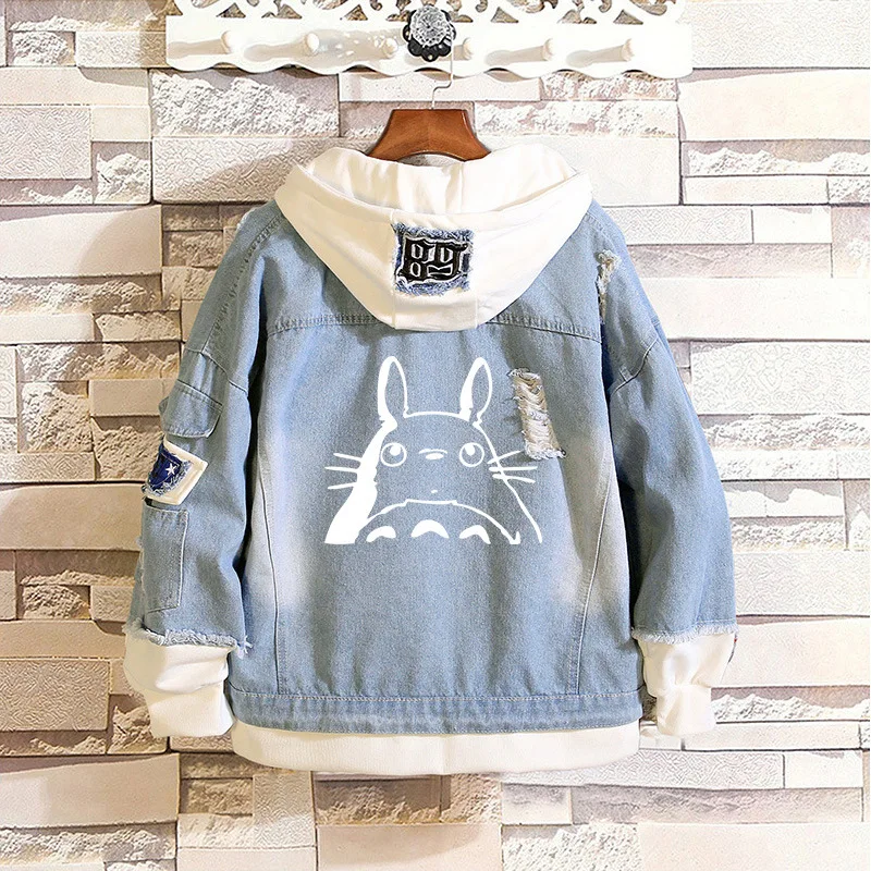 Джинсовая куртка для мужчин и женщин, пиджак из денима в стиле аниме, с капюшоном, в стиле Мой сосед Тоторо, одежда оверсайз