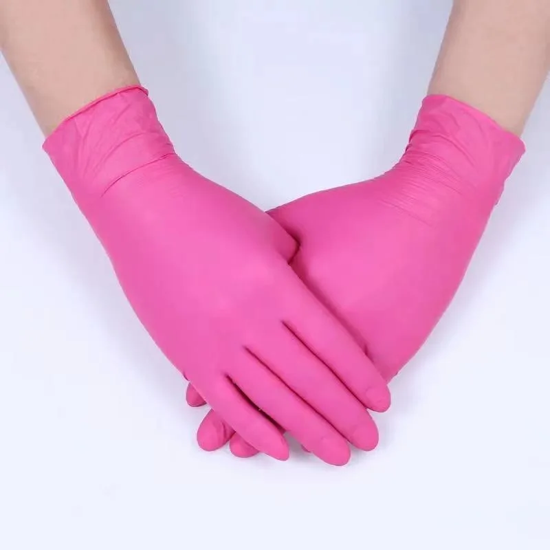 Нитриловые одноразовые перчатки, розовые универсальные защитные лат...