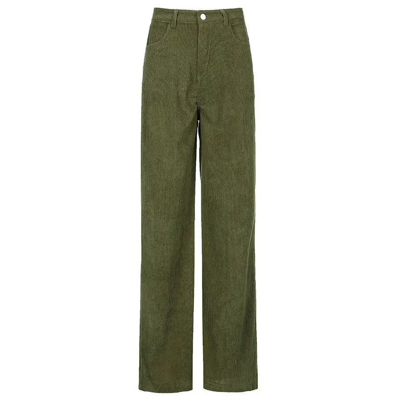 Облегающие повседневные женские брюки с высокой талией и длинными штанинами, новинка, однотонные теплые вельветовые прямые широкие брюки для женщин