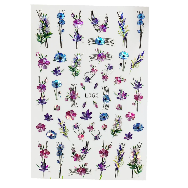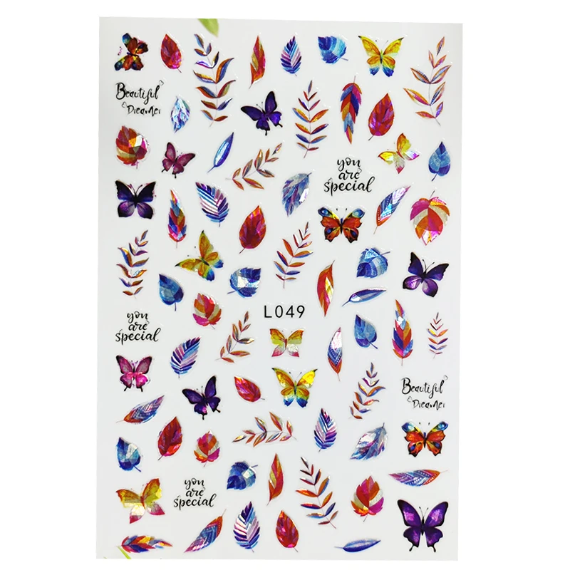 3D наклейки для ногтей водонепроницаемые блестящие наклейки для ногтей красивые перья цветы украшение для ногтей Аврора серебристый дизайн