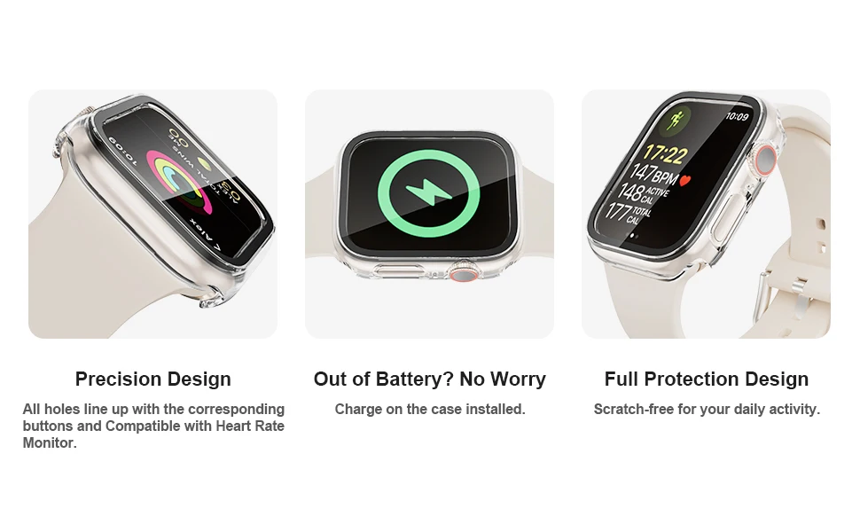 Чехол с закаленным стеклом для Apple Watch 7, 41 мм, 45 мм, 2 шт.упаковка