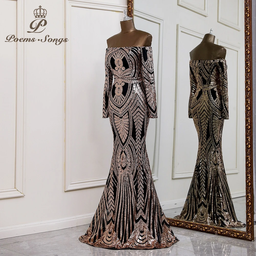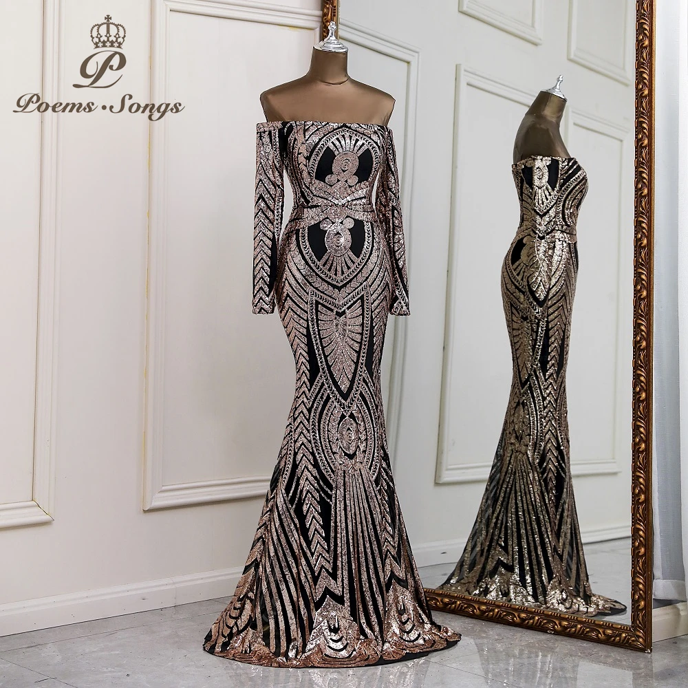 Женское вечернее платье с блестками, элегантное платье с длинным рукавом для выпускного вечера, 2022
