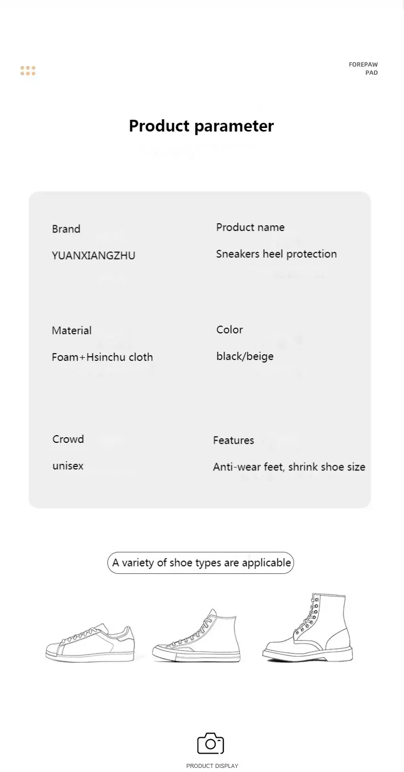 Спецификация:Материал: высокоэластичная пена + хлопковая сеткаВ Размеры: 11,5*8 см, толщина из тонкой ткани, 5 мм, носки для малышей, толстые, 10 мм;B Размеры: 9*4,5 смЦвет: бежевый, черныйКоличество: 2 шт./параОписание:1. Уменьшить размер, чтобы предотвратить истирание, истирание ног и пятку;2. Улучшите форму короны, чтобы соответствовать и предотвратить износ, и решите проблемы с большой обувью/носками3. Мягкий и удобный, не чувствуется, высококачественный клей;4. Можно свободно резать в зависимости от высоты и формы каблука обуви;Толщина ≥ 5 мм: подходит для обуви с половинным размером/каблукомТолщина ≥ 10 мм: подходит для больших размеров/обувь на каблуке