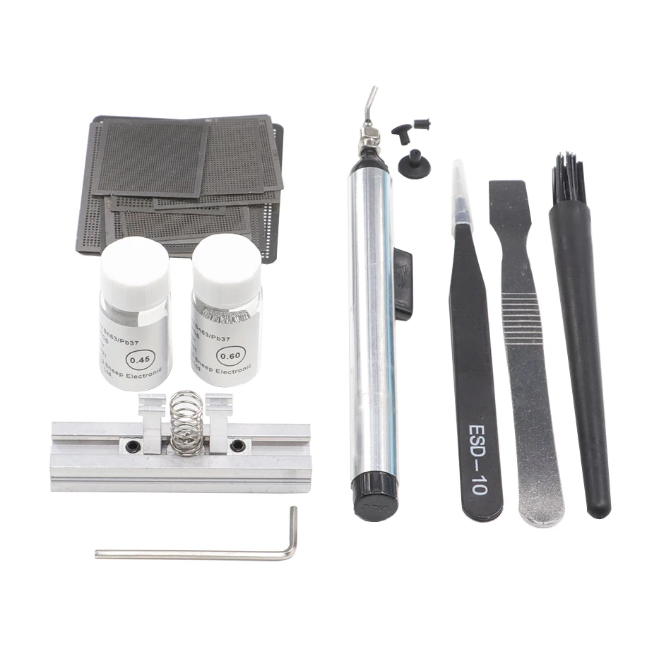 Этот набор включает в себя посадочную платформу, стальную сетку, Оловянные шарики, шестигранный ключ, щетку, скребок и так далее.