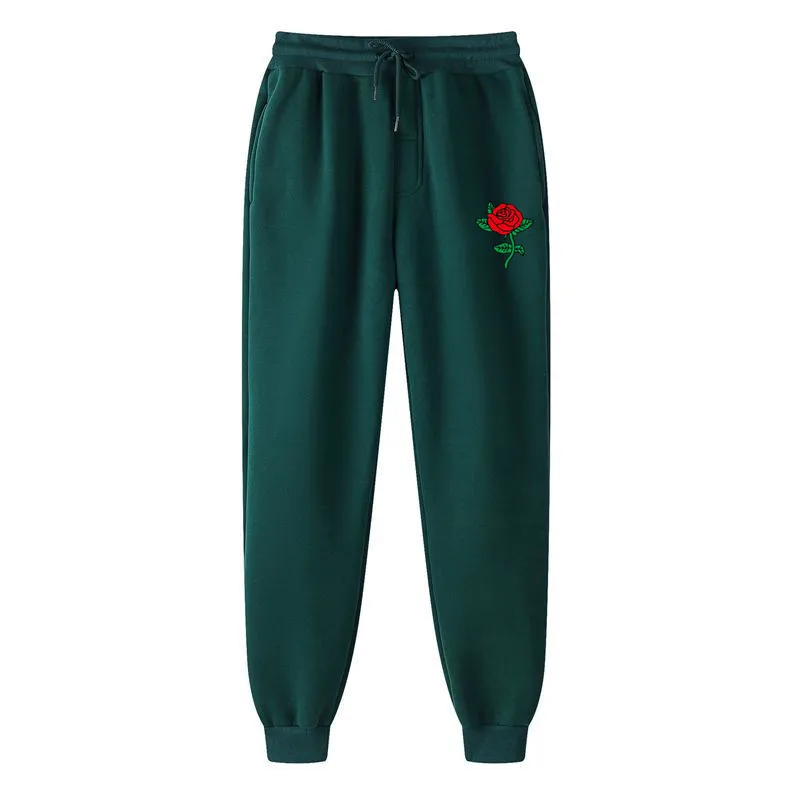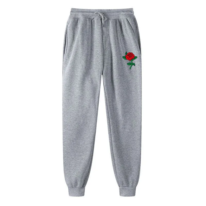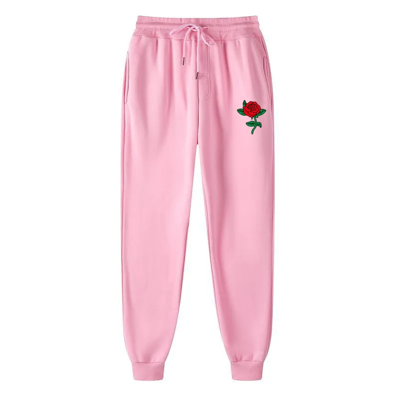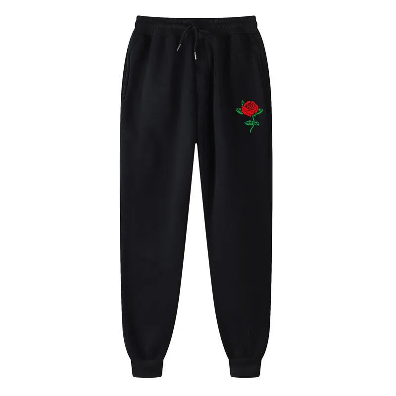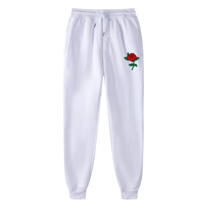Повседневные штаны для фитнеса с принтом розы для мужчин и женщин, джоггеры, спортивная одежда, спортивные штаны, брюки, черные, белые тренировочные штаны для бодибилдинга