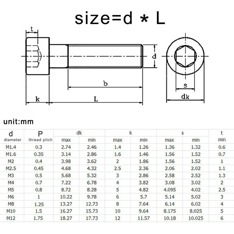 Материал: нержавеющая сталь 304/сталь класса 12,9 Размер: d (диаметр резьбы) x L (длина резьбы) Напоминаем:В большинстве случаев болт с полной резьбой, небольшая часть 12,9 класс стали удлиненный болт половина резьбы Метрический Диаметр резьбы:M3(3 мм) / M4(4 мм) / M5(5 мм) / M6(6 мм) / M8(8 мм)Метрический Шаг резьбы: 0,5 мм (M3) /0,7 мм (M4) /0,8 мм (M5) / 1(M6) /1,25 мм (M8) Длина резьбы: 3 мм-80 мм