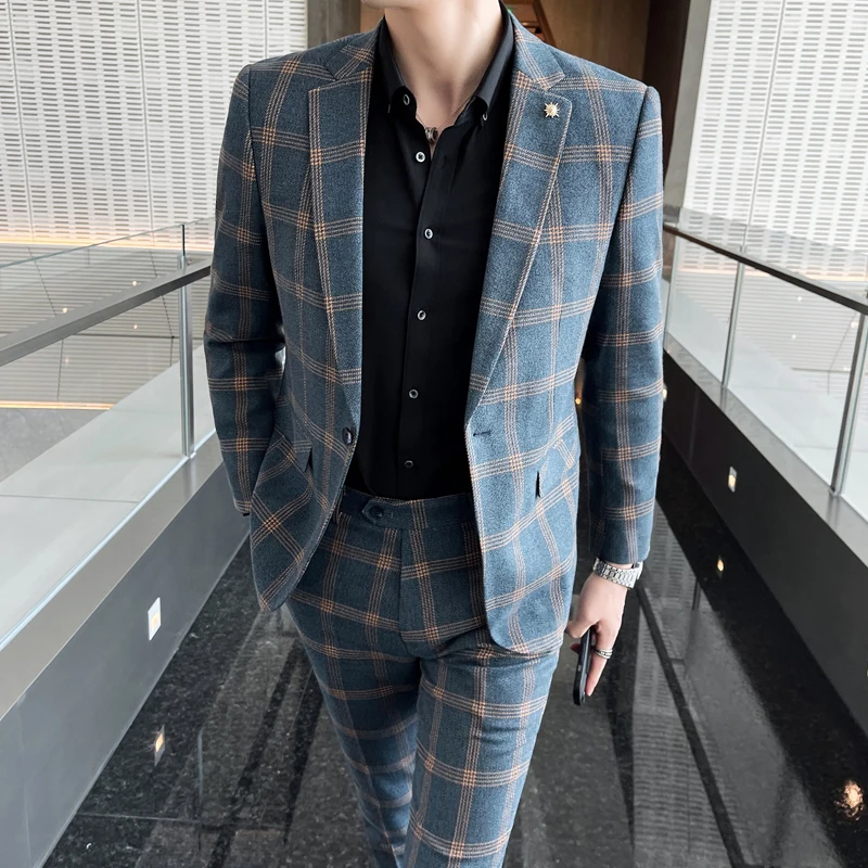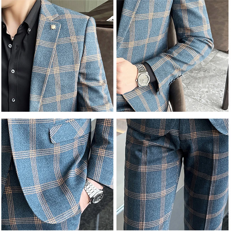 (Блейзеры + жилет + брюки) роскошный высококачественный брендовый модный клетчатый Мужской приталенный деловой костюм свадебное платье для жениха