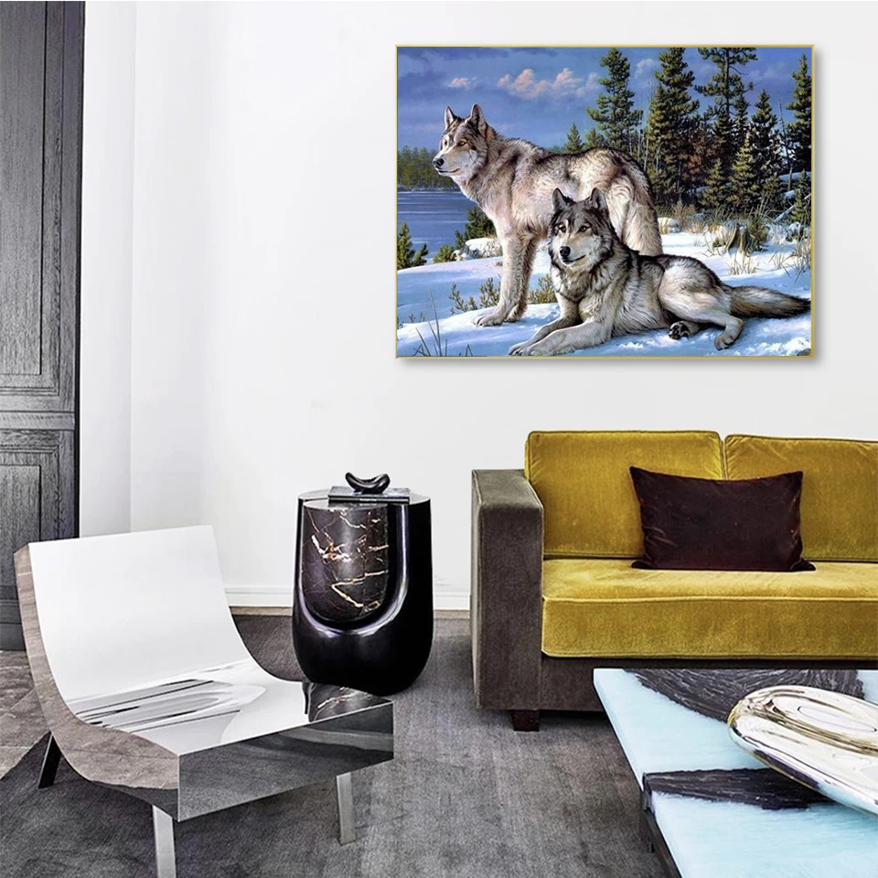 Алмазная живопись, вышивка с изображением волка, животных, стразы, вышивка крестиком, домашний декор, полная дрель, настенные наклейки, Набор для творчества